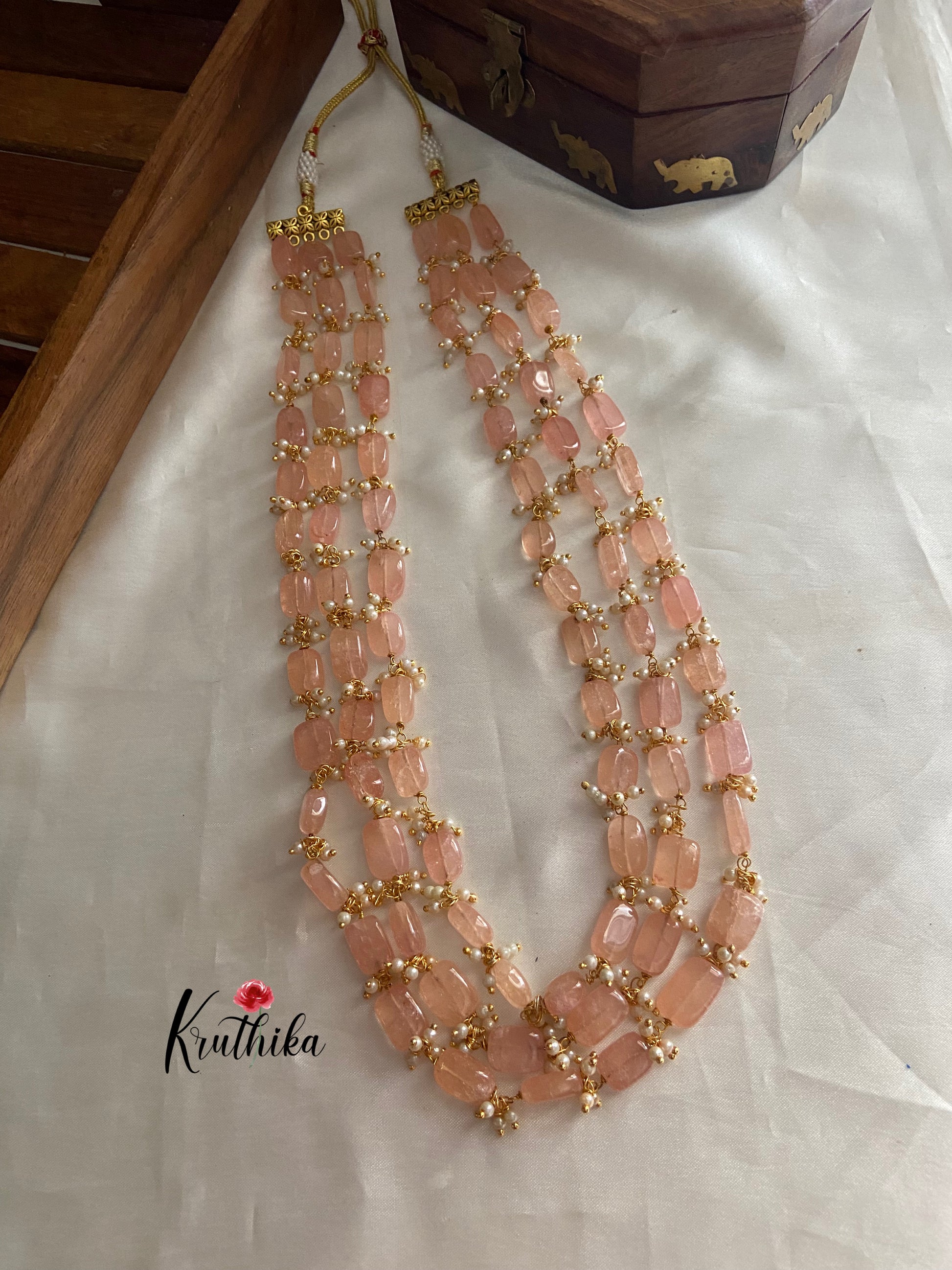 Enhance your style with our stunning Three lines beads pearls maala, paired perfectly with matching earrings. Crafted with high-quality stones & beads, this set combines timeless elegance with a modern touch. Ideal for special occasions or adding a touch of glamour to your look.