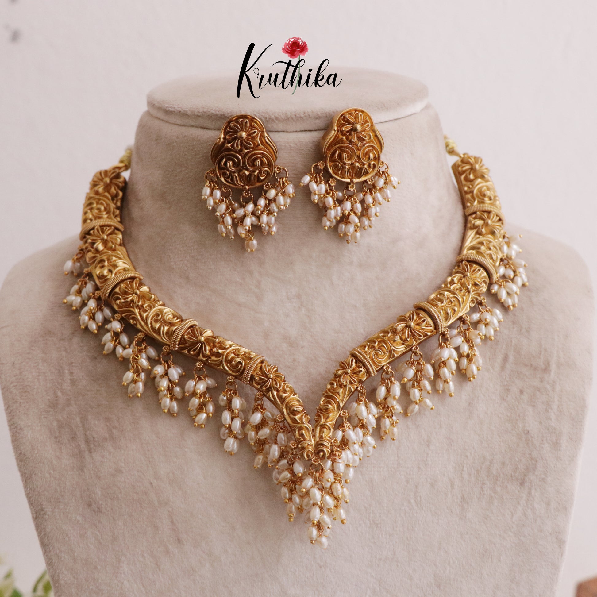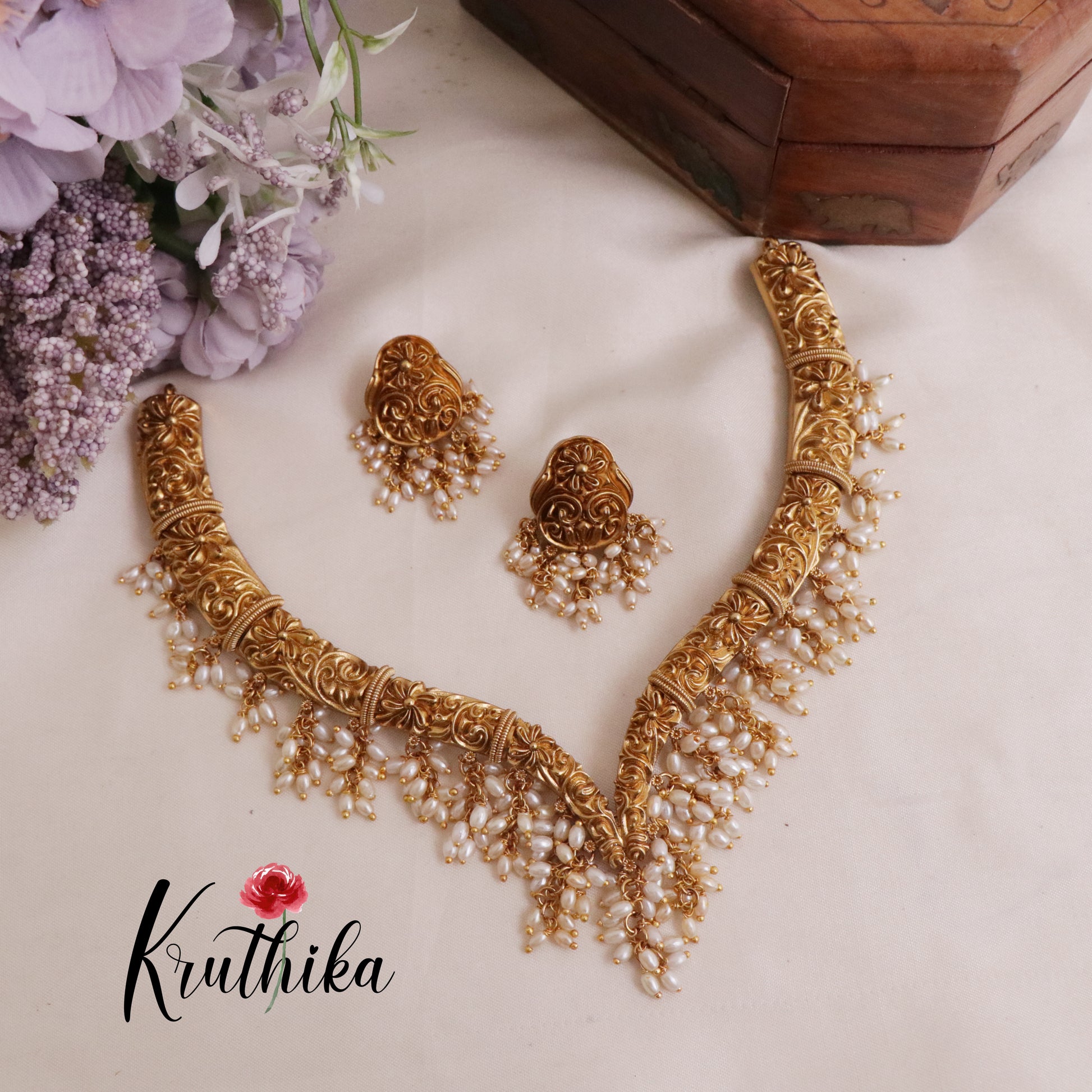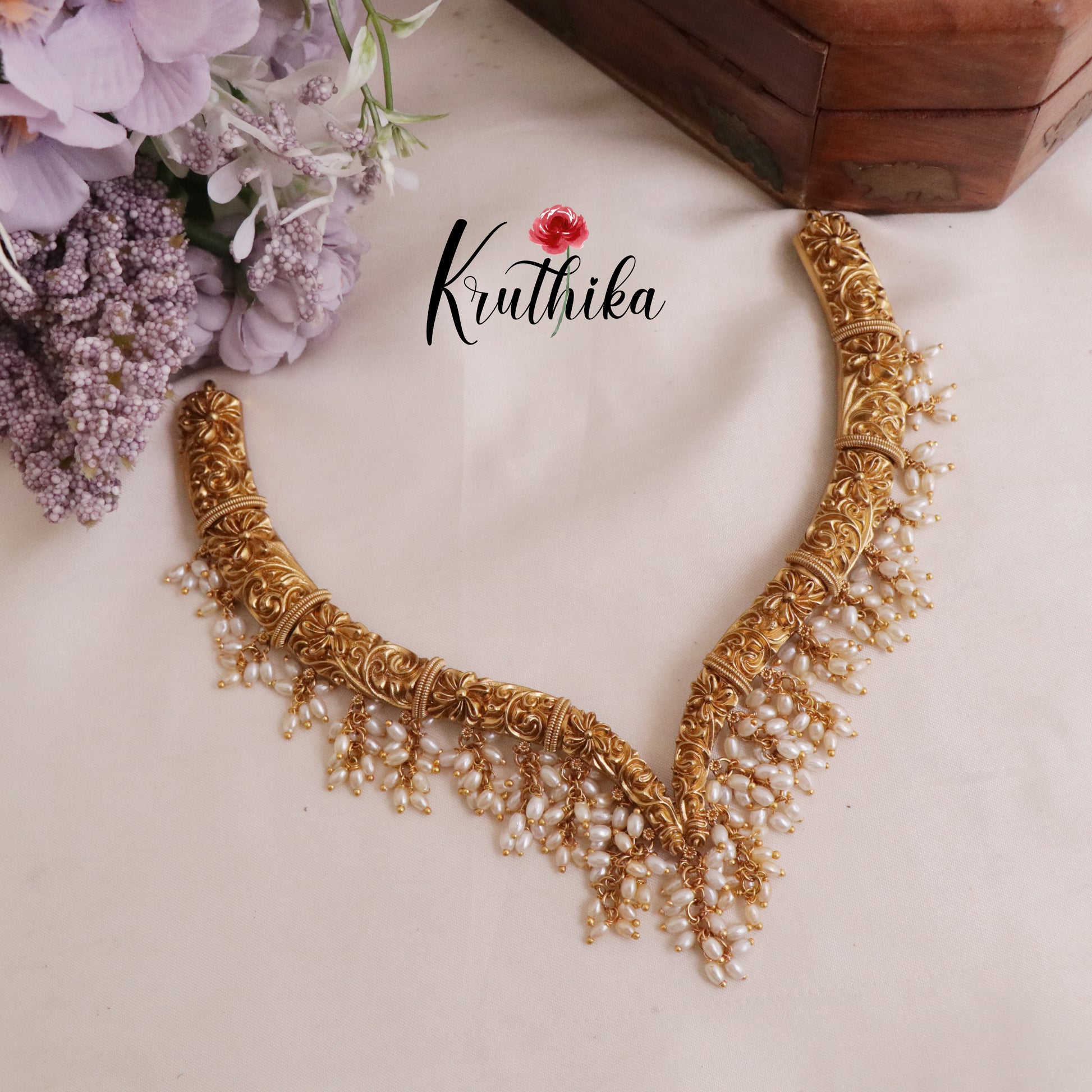 Traditional Antique Hasli Necklace,Adorned with Clusters of Tiny Pearls NC2020