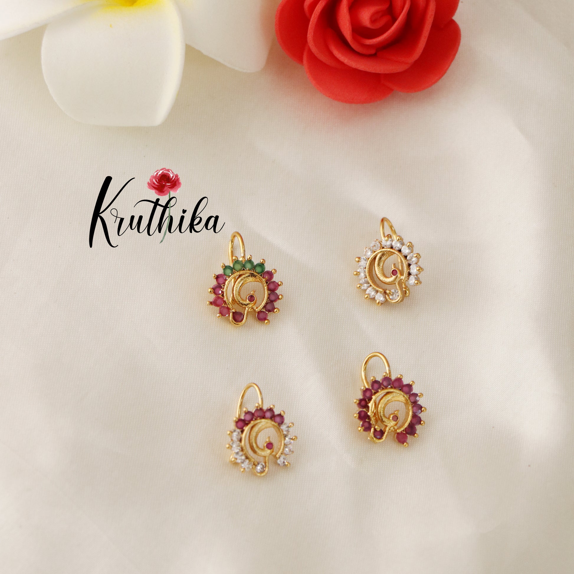 A traditional nose pin, or nath, with a clip on design combines cultural elegance with contemporary convenience. Crafted from high-quality metal, it features intricate detailing, often adorned with CZ stones or filigree patterns. The clip ensures a secure fit, making it easy to wear while adding a timeless charm to any look. Perfect for festive occasions or everyday elegance, this piece embodies tradition and style.