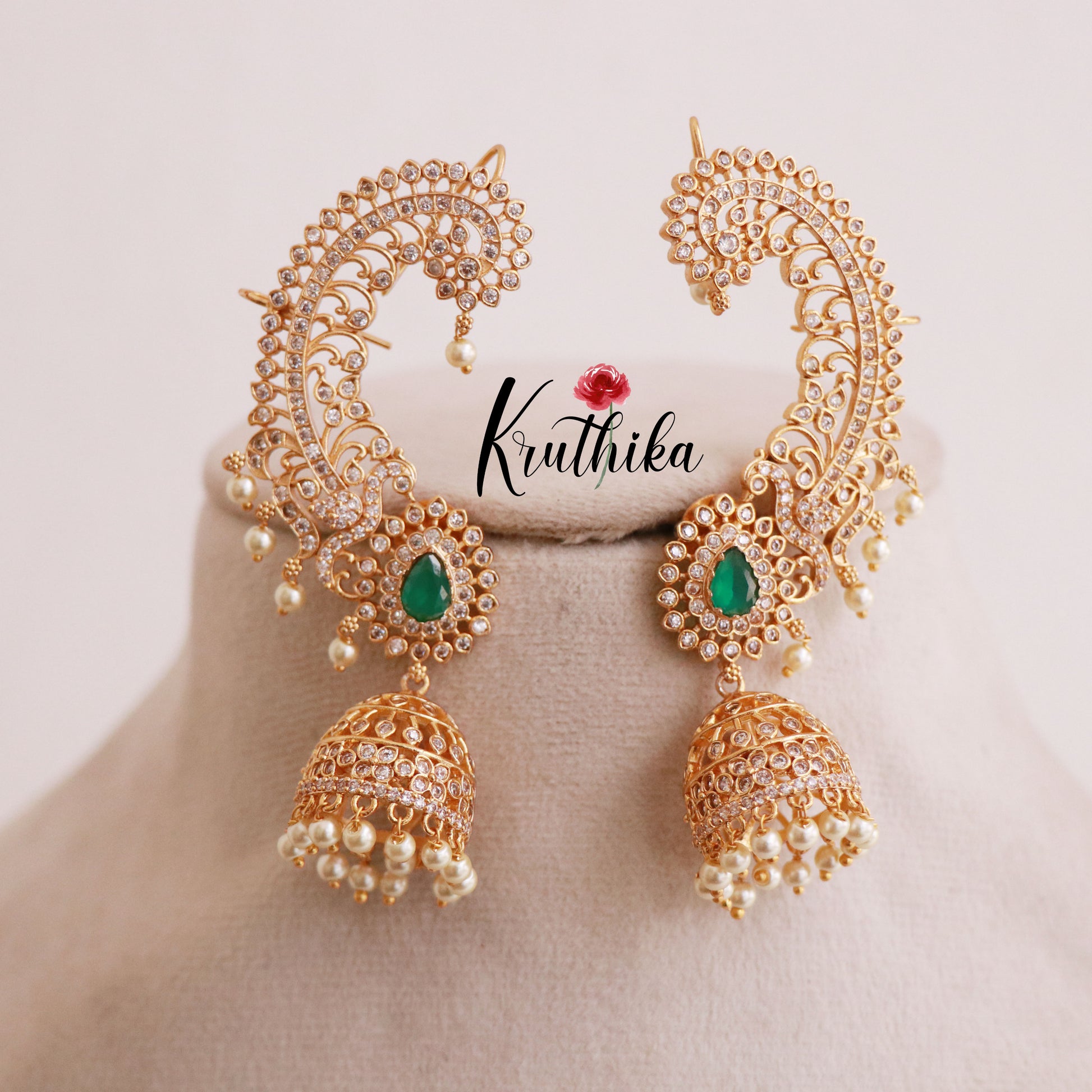 Enhance your style with our stunning, Trendy AD/CZ Peacock Ear Cuffs. Crafted with high-quality stones & beads, this set combines timeless elegance with a modern touch. Ideal for special occasions or adding a touch of glamour to your look.