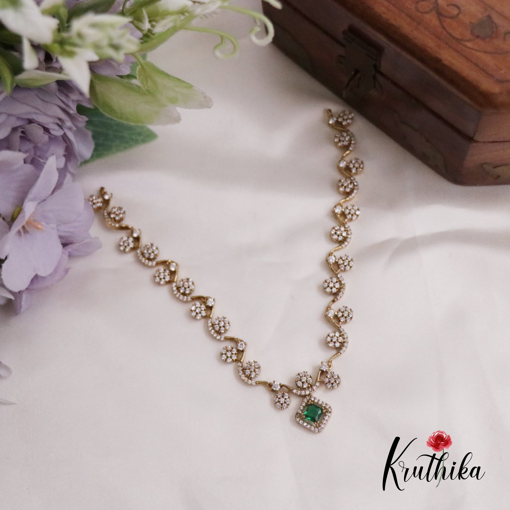Enhance your style with our stunning Trendy AD Stone Floral Necklace Set Crafted with high-quality stones & beads, this set combines timeless elegance with a modern touch. Ideal for special occasions or adding a touch of glamour to your look.