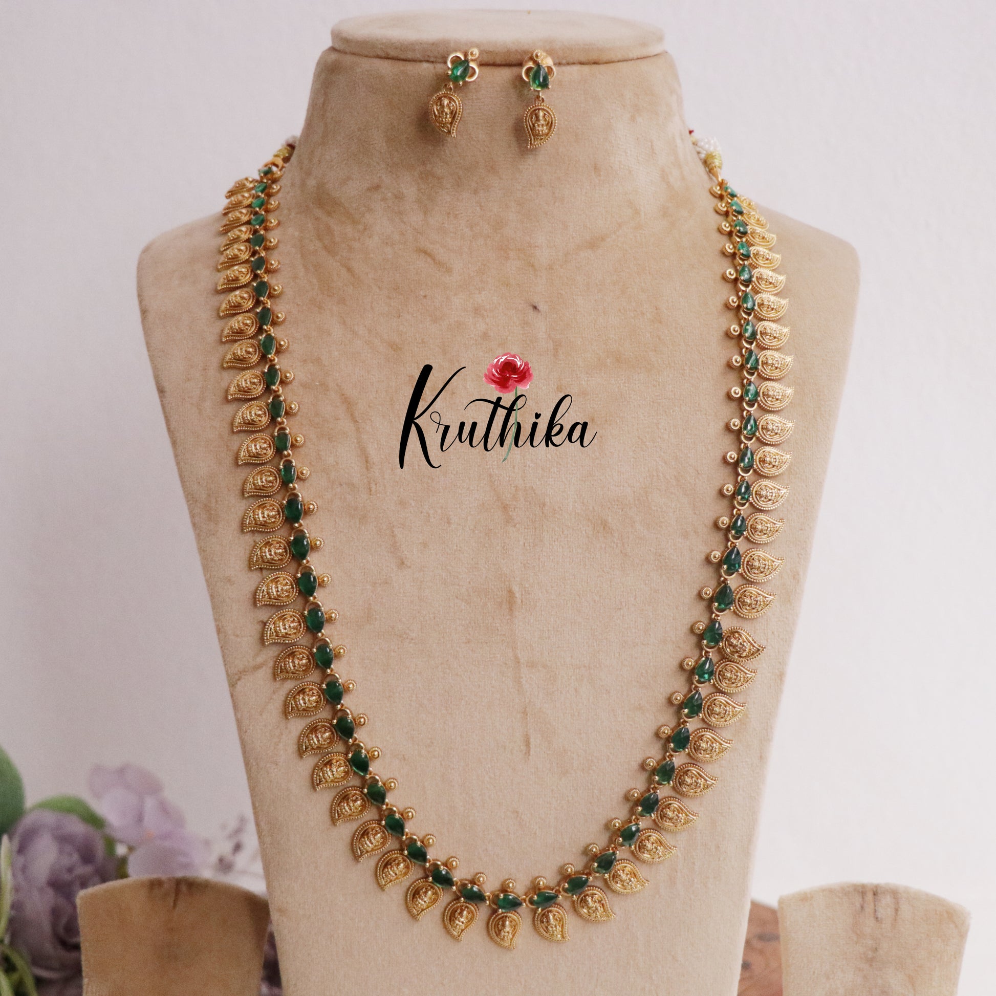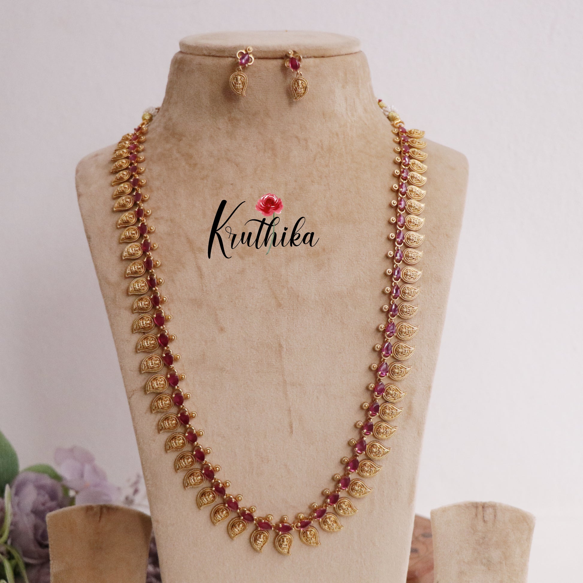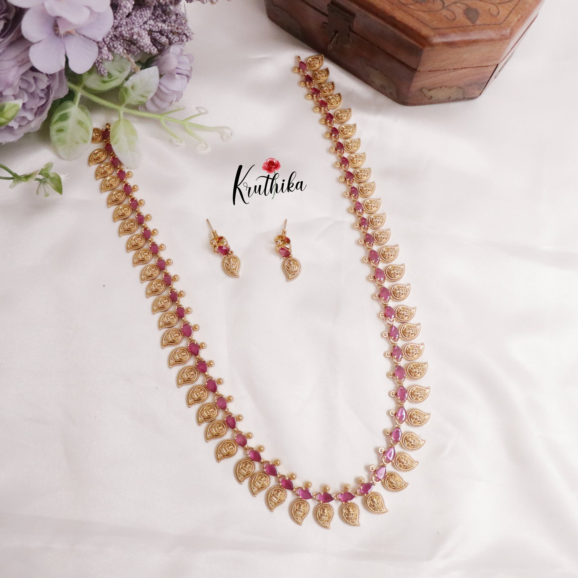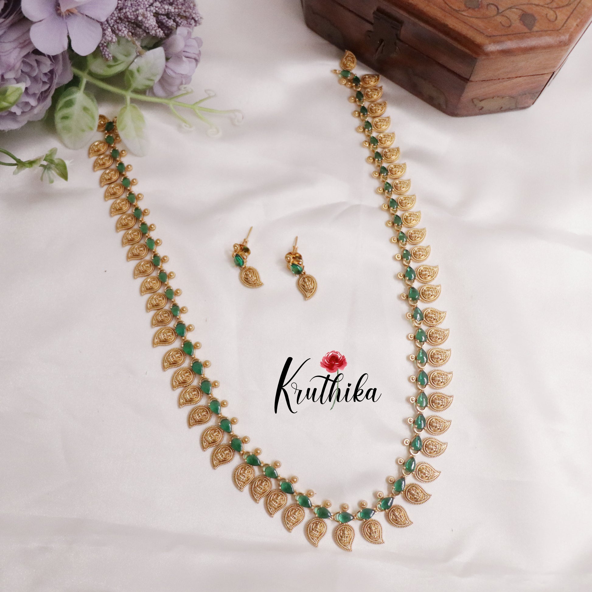 Enhance your style with our stunning, Trendy AD Manga Haaram Crafted with high-quality stones & beads, this set combines timeless elegance with a modern touch. Ideal for special occasions or adding a touch of glamour to your look.