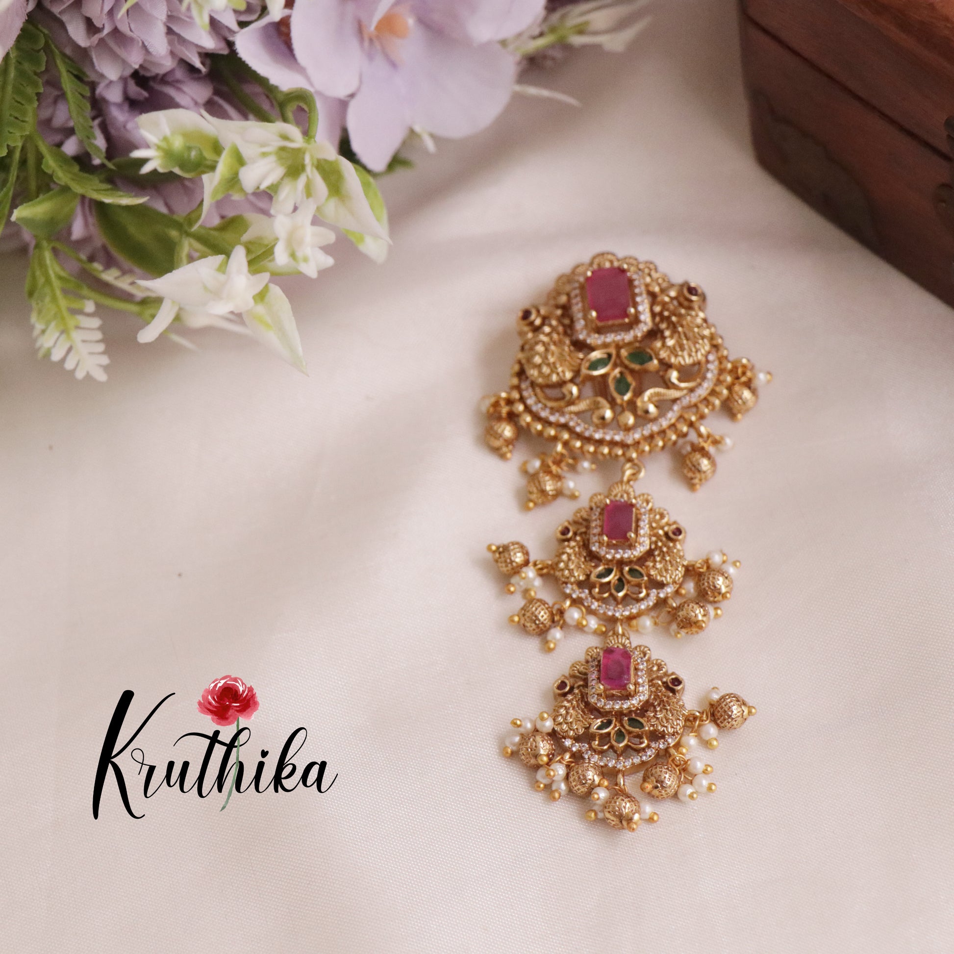 Trendy Ad Peacock Jada Billa with Golden Beads J170