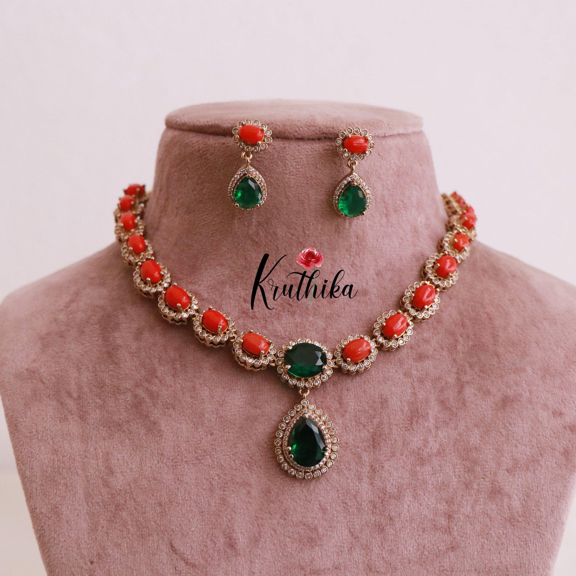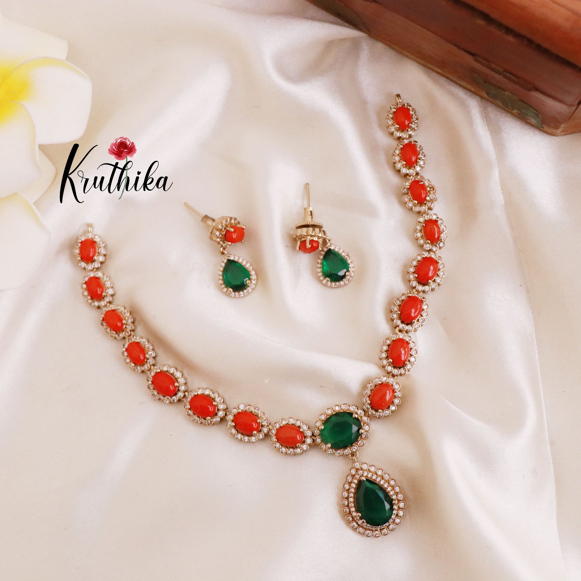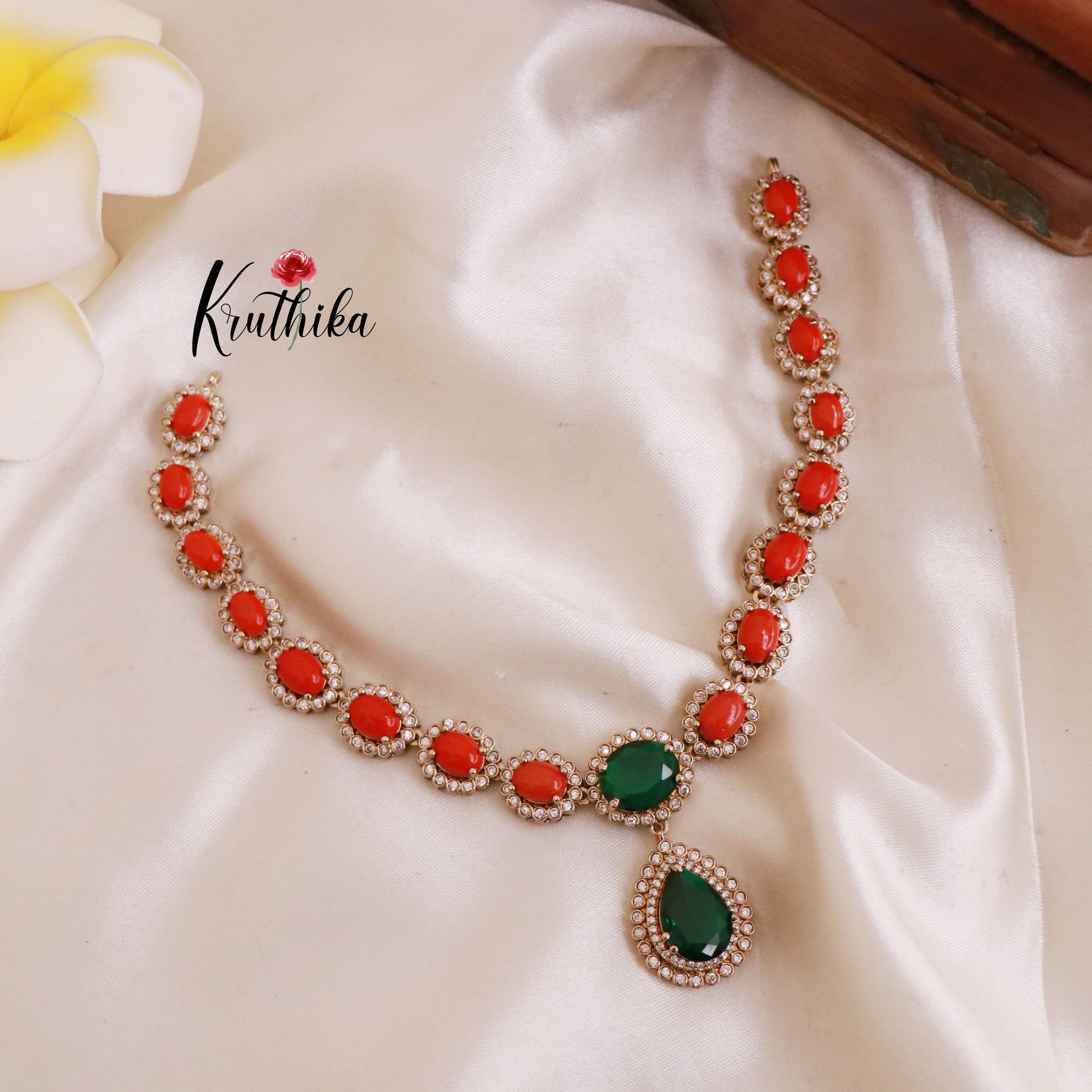 Enhance your style with our stunning, Trendy AD/Victorian Necklace. Crafted with high-quality stones & beads, this set combines timeless elegance with a modern touch. Ideal for special occasions or adding a touch of glamour to your look.