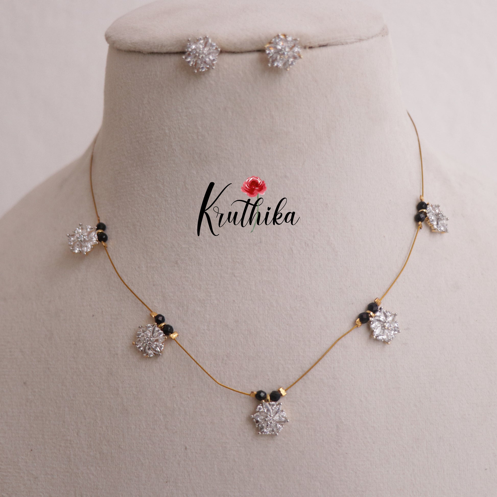 Enhance your style with our stunning Trendy CZ Black Bead Invisible Chain paired perfectly with matching earrings. Crafted with high-quality stones & beads, this set combines timeless elegance with a modern touch. Ideal for special occasions or adding a touch of glamour to your look.