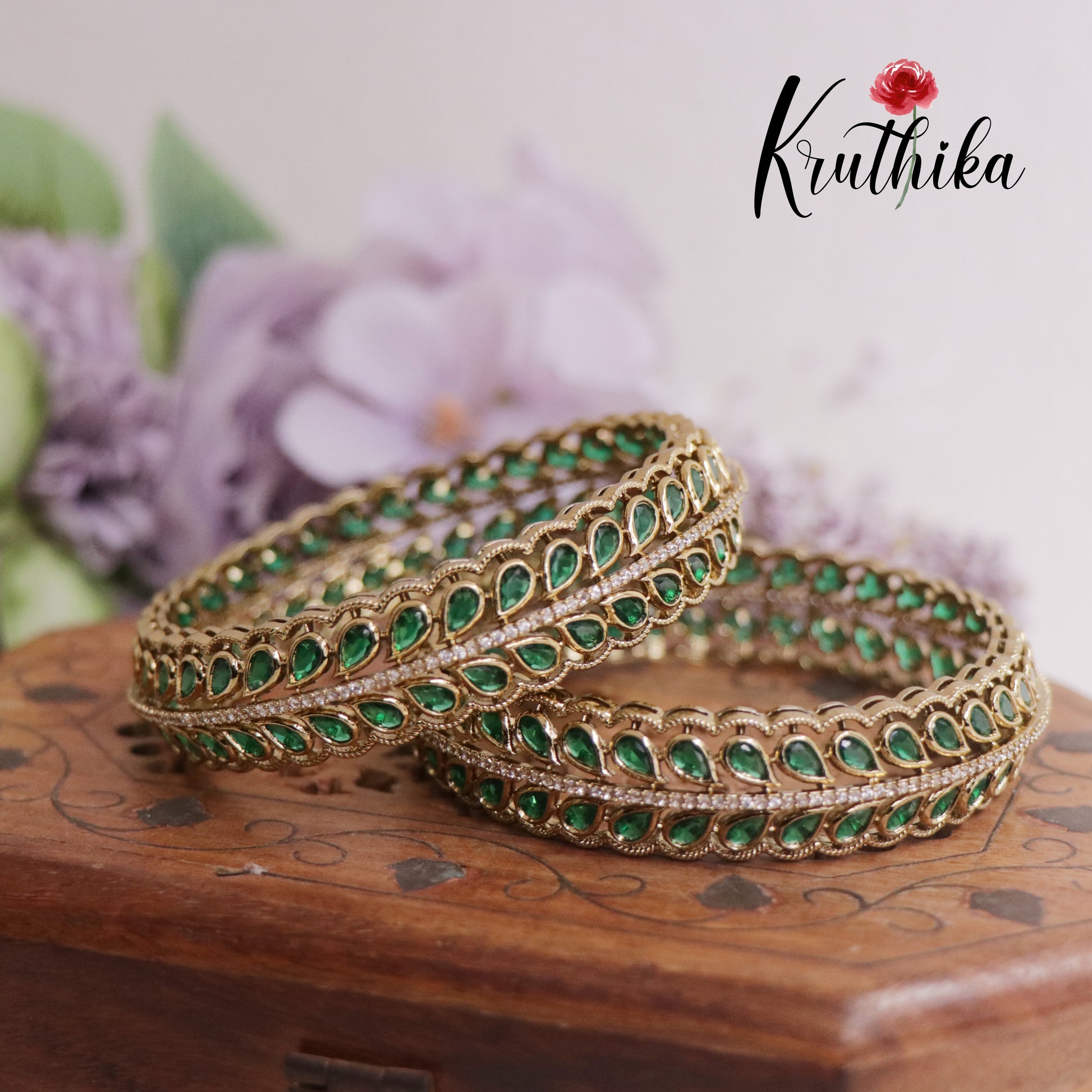 Trendy CZ Leaf Victorian Bangles B297 (Available in 2 Colours)| (Set of 2 Bangles)