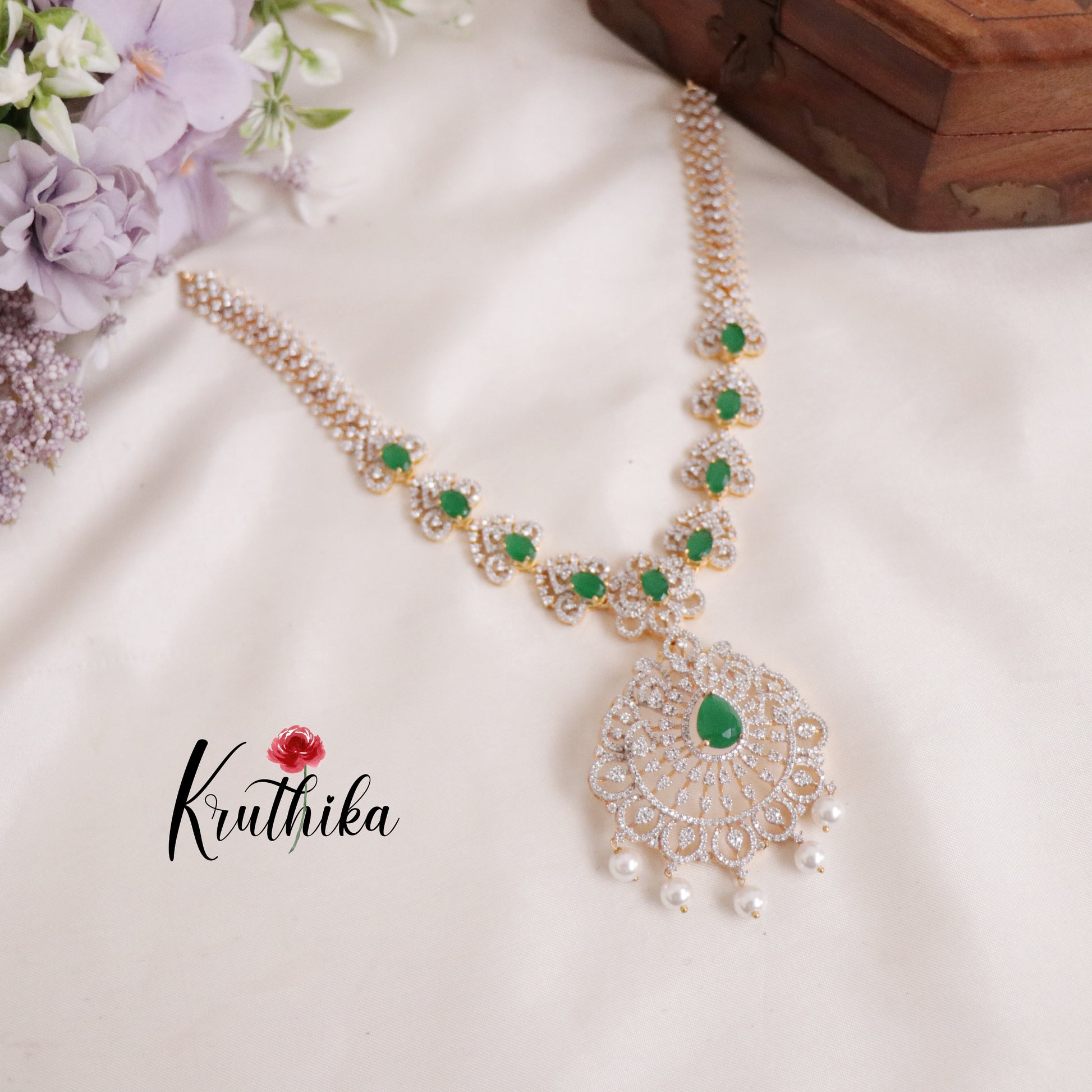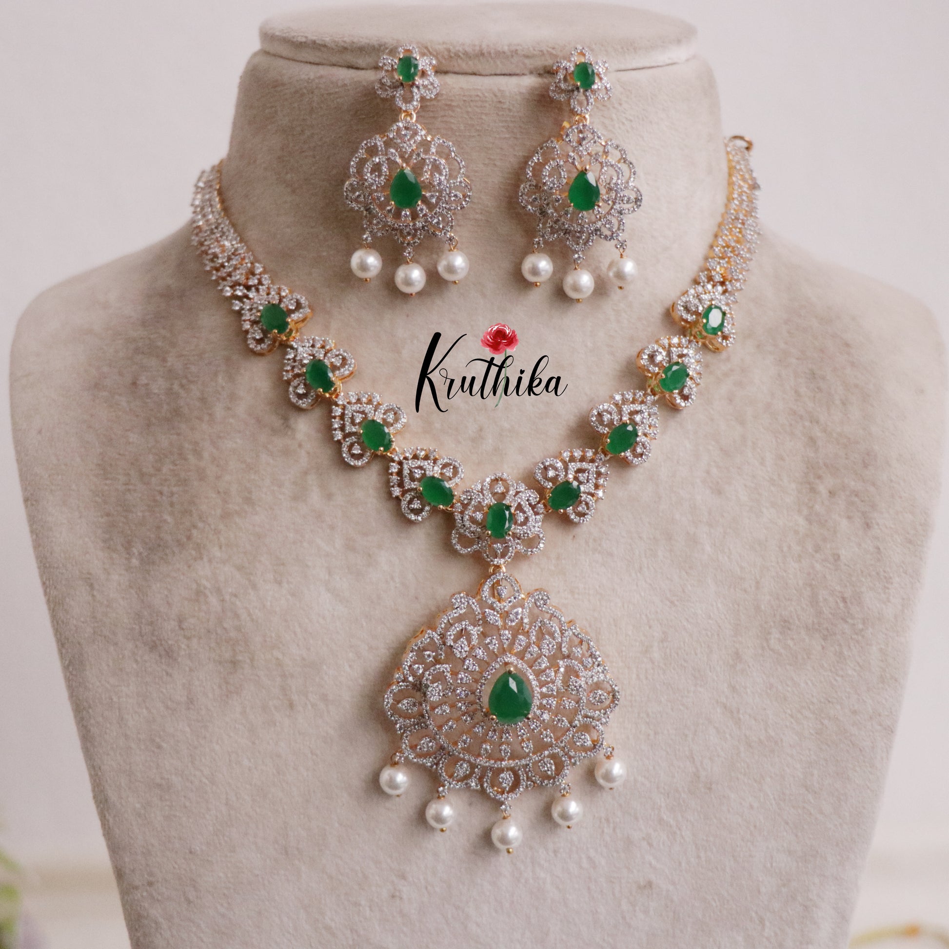 Enhance your style with our stunning Trendy CZ Sparkling Floral Design with Pearl Drops paired perfectly with matching earrings. Crafted with high-quality stones & beads, this set combines timeless elegance with a modern touch. Ideal for special occasions or adding a touch of glamour to your look.
