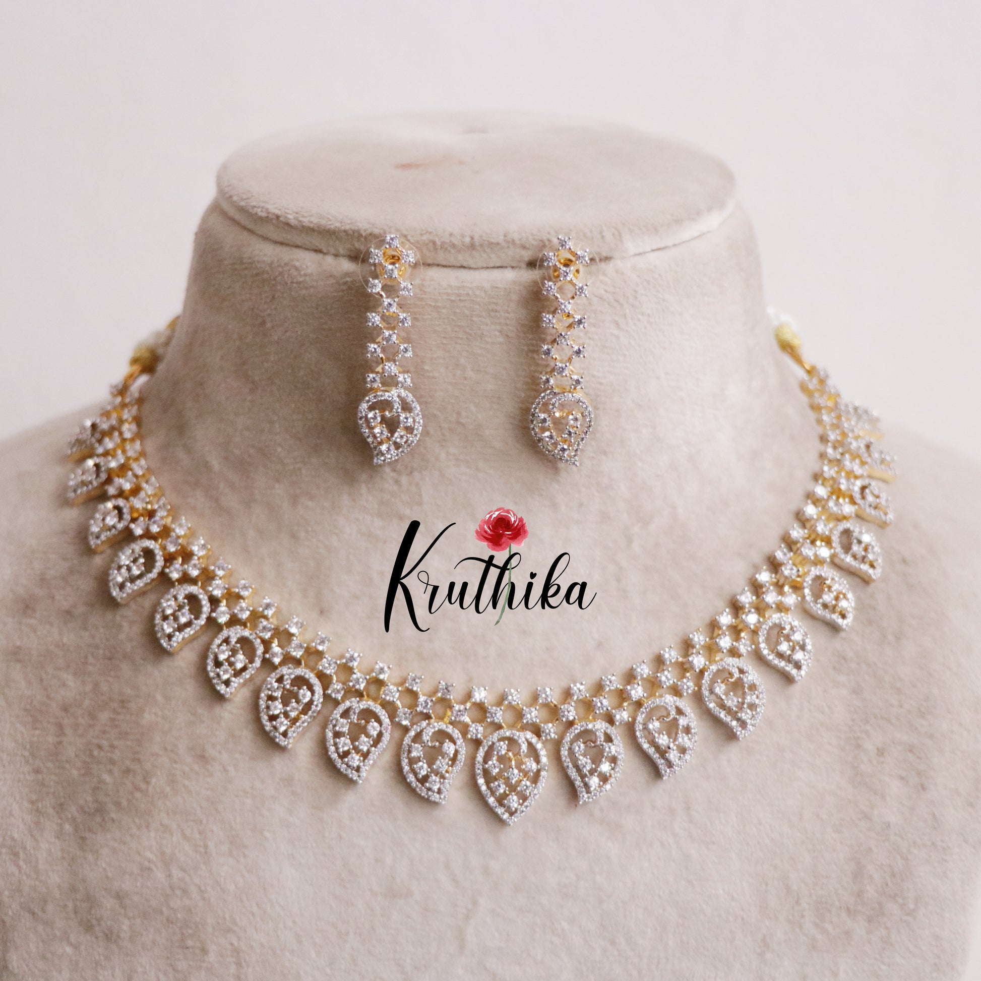 Enhance your style with our stunning Trendy CZ Sparkling Leaf Dazzle Drop Necklace Set paired perfectly with matching earrings. Crafted with high-quality stones & beads, this set combines timeless elegance with a modern touch. Ideal for special occasions or adding a touch of glamour to your look.