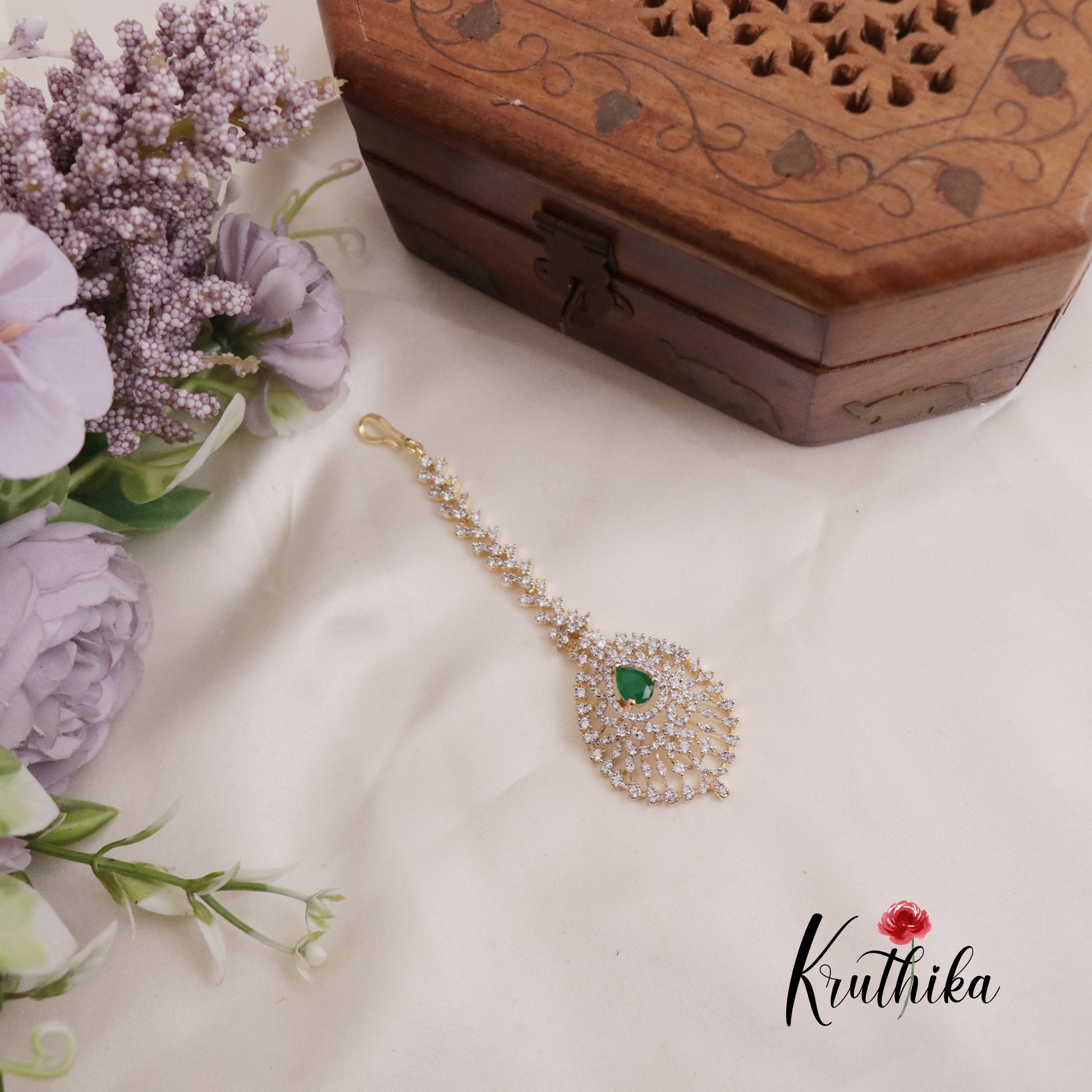 Enhance your style with our stunning Trendy CZ Sparkling Maang Tikka Crafted with high-quality stones & beads, this set combines timeless elegance with a modern touch. Ideal for special occasions or adding a touch of glamour to your look.