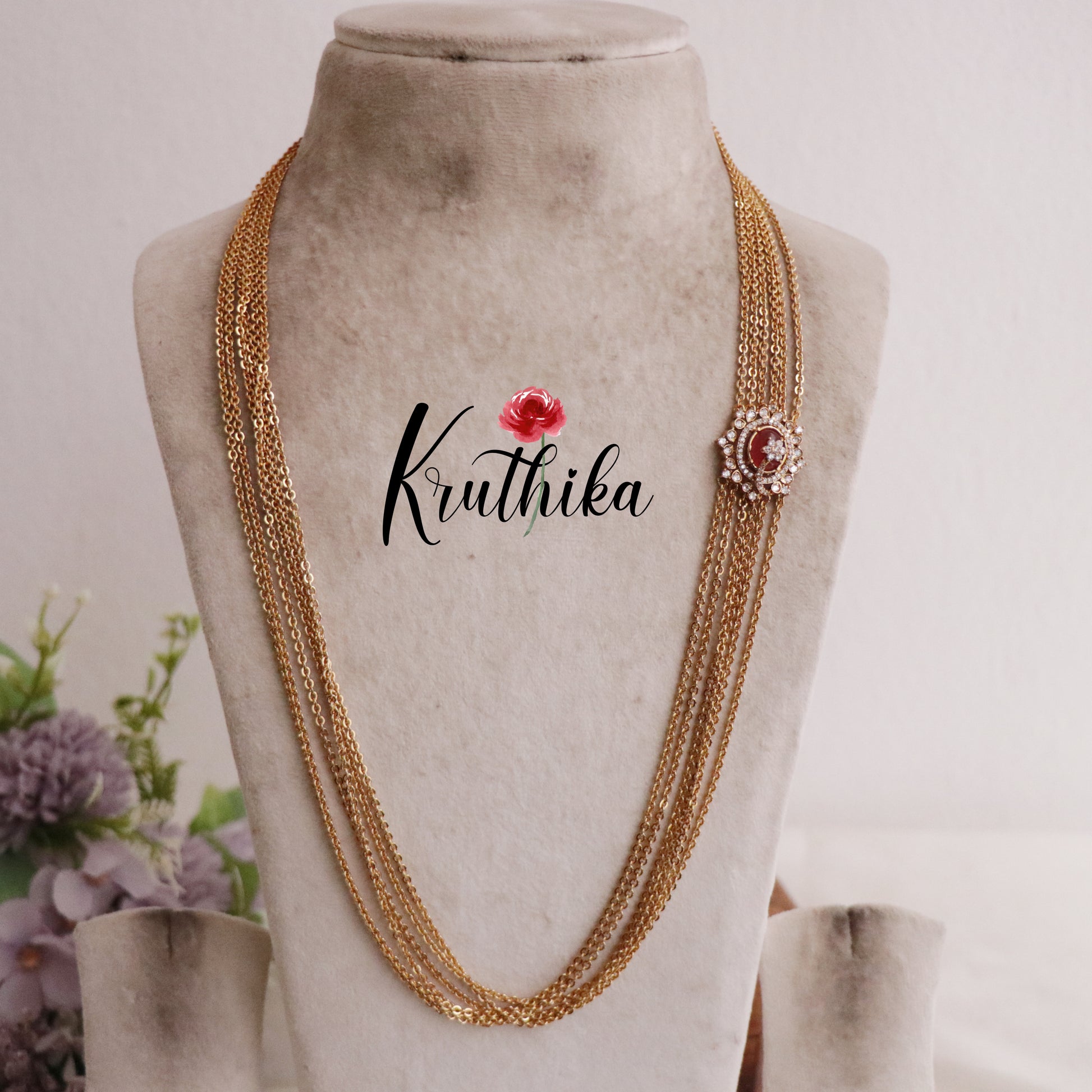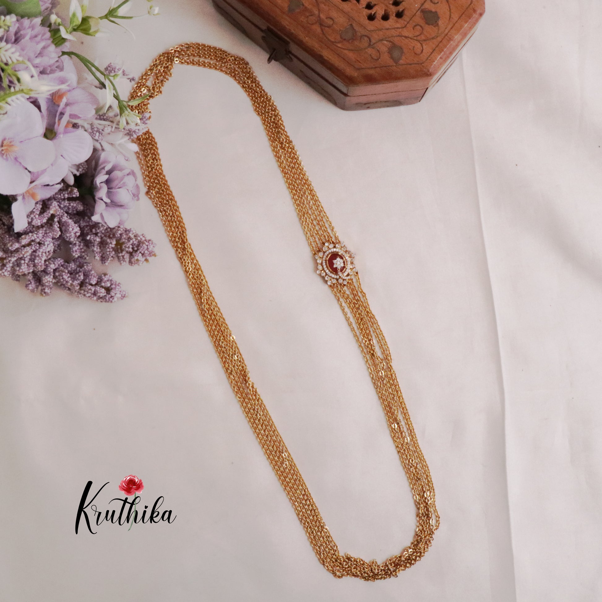 Trendy Four Layer Chandra Haaram Ruby with AD Pendant LH1905