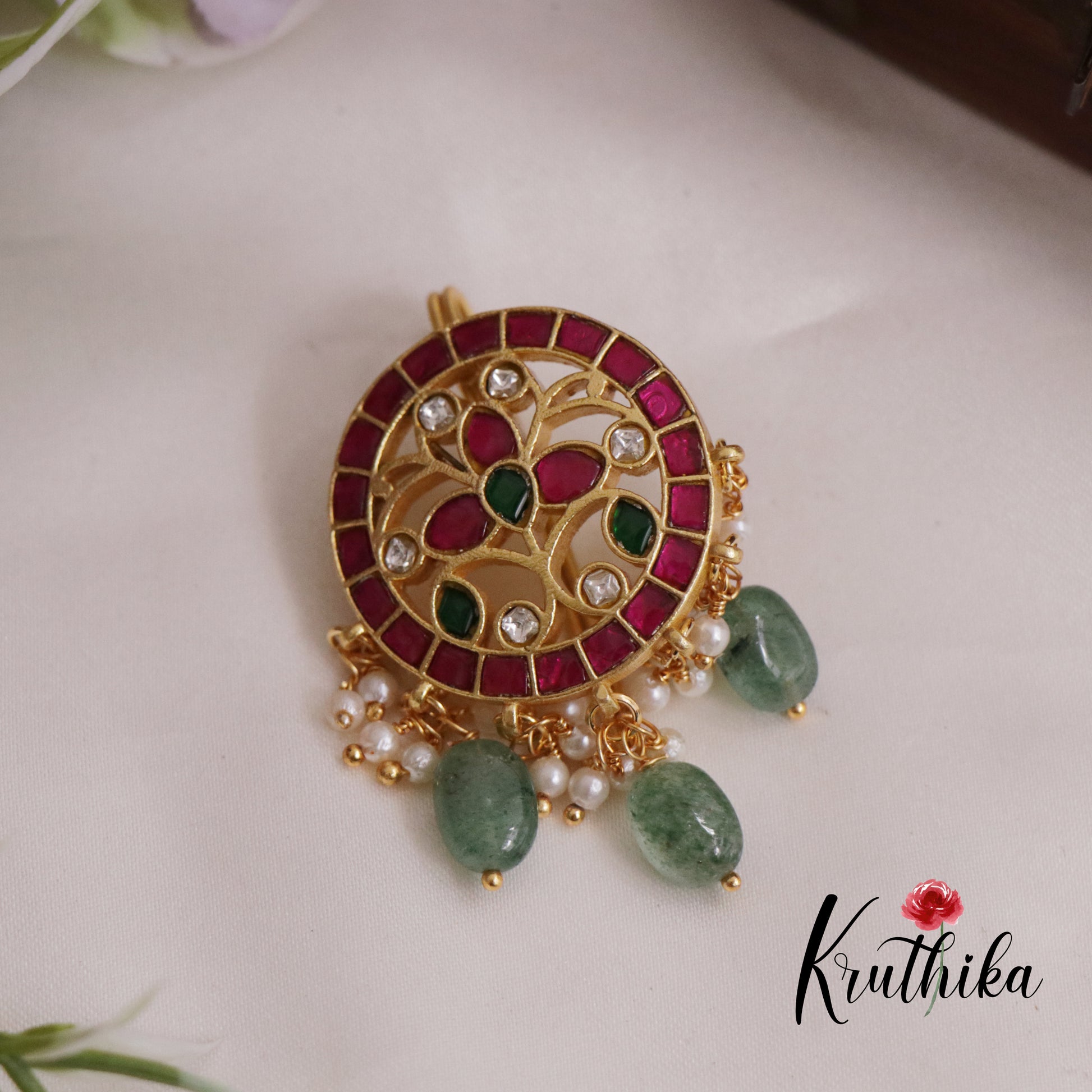 Trendy Jadau Jada Billa with Green Beads Drops J232