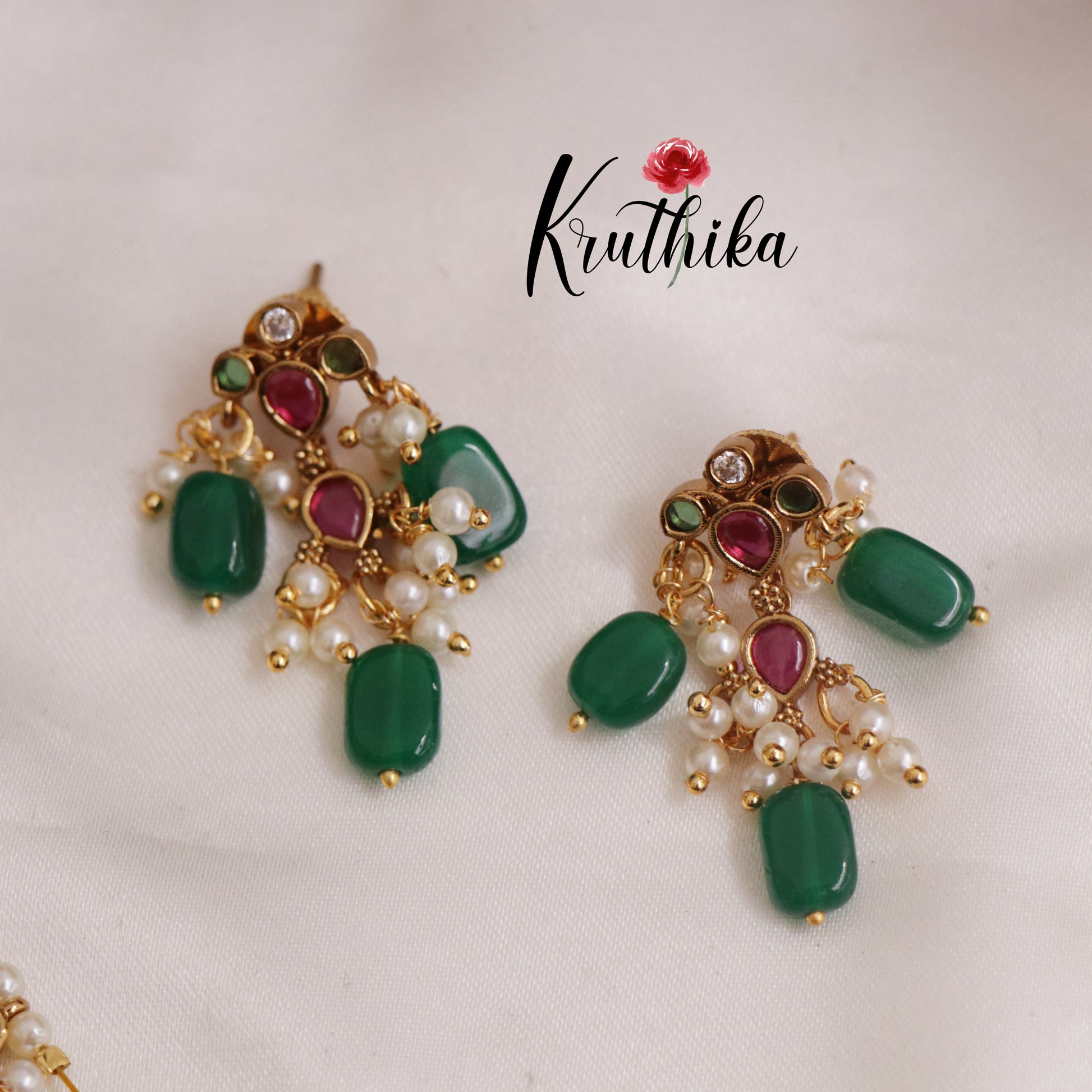 Enhance your style with our stunning Trendy Kemp Invisible Chain with Green Beads Drops paired perfectly with matching earrings. Crafted with high-quality stones & beads, this set combines timeless elegance with a modern touch. Ideal for special occasions or adding a touch of glamour to your look.
