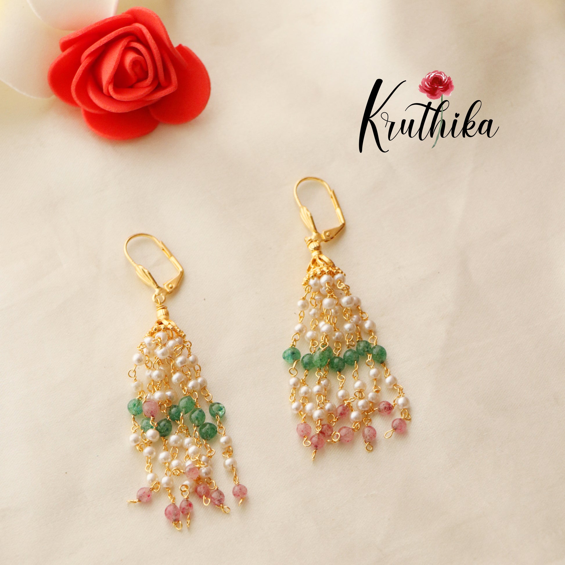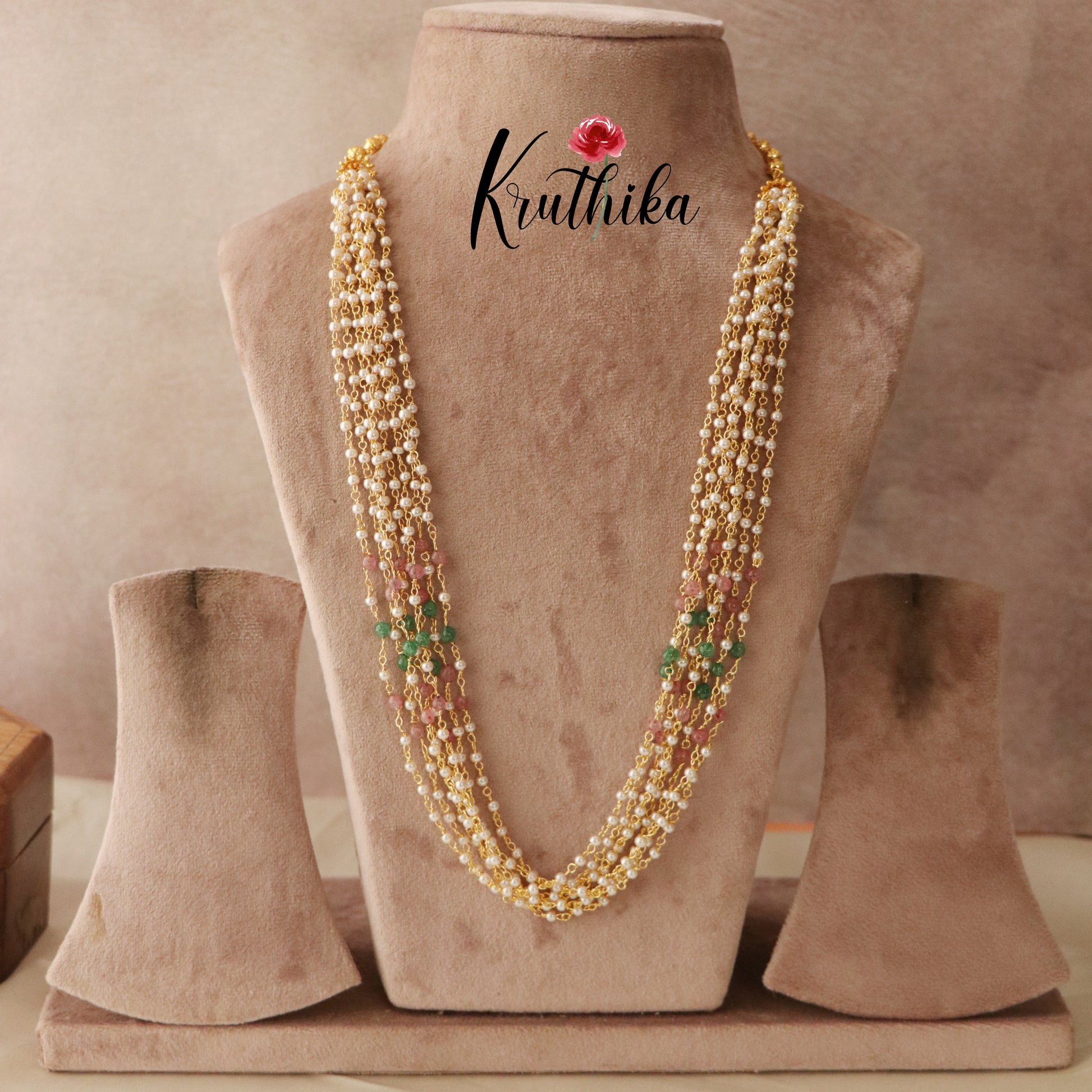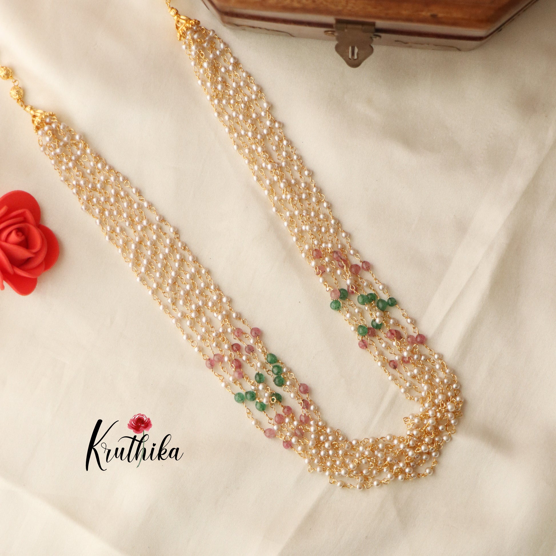 Enhance your style with our stunning, Trendy Multi Colour Peal Mala Set paired perfectly with matching earrings. Crafted with high-quality stones & beads, this set combines timeless elegance with a modern touch. Ideal for special occasions or adding a touch of glamour to your look.