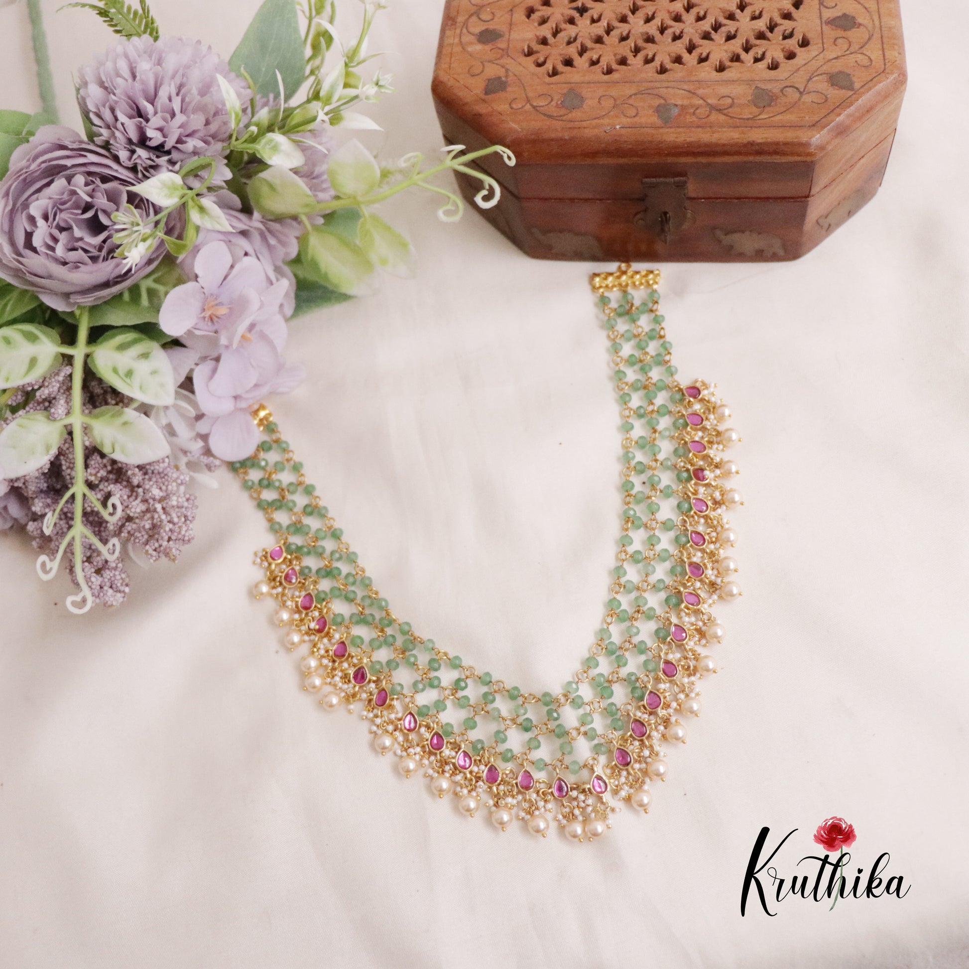 Enhance your style with our stunning Trendy Onyx Beads Layered Pink Stone Choker With Golden Beads Drops Crafted with high-quality stones & beads, this set combines timeless elegance with a modern touch. Ideal for special occasions or adding a touch of glamour to your look.