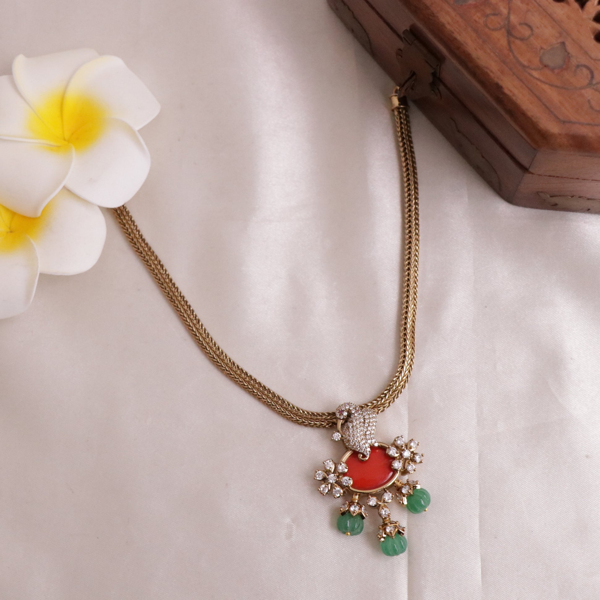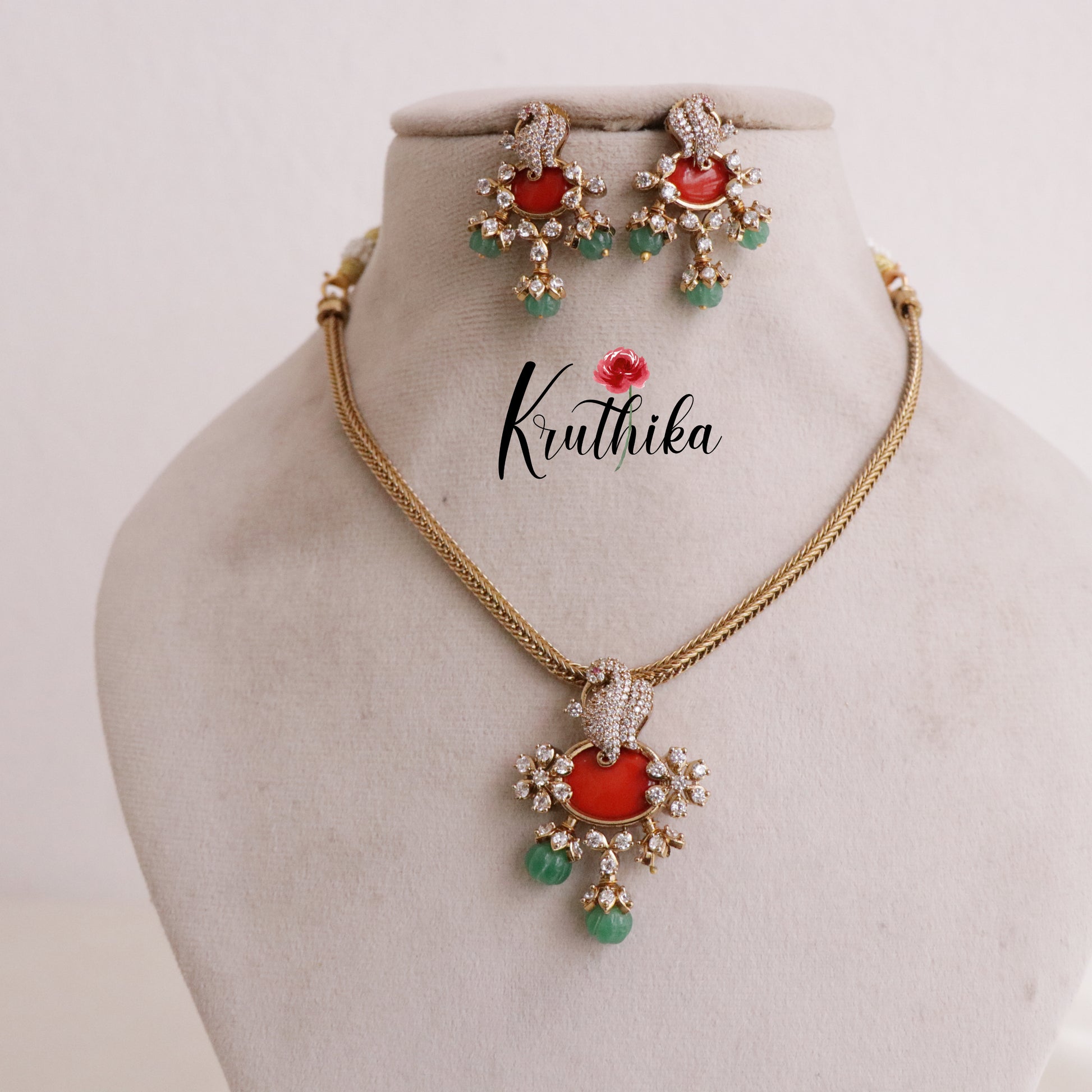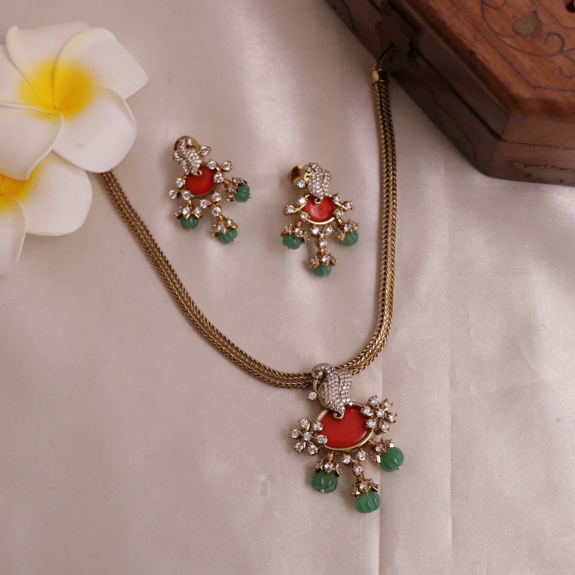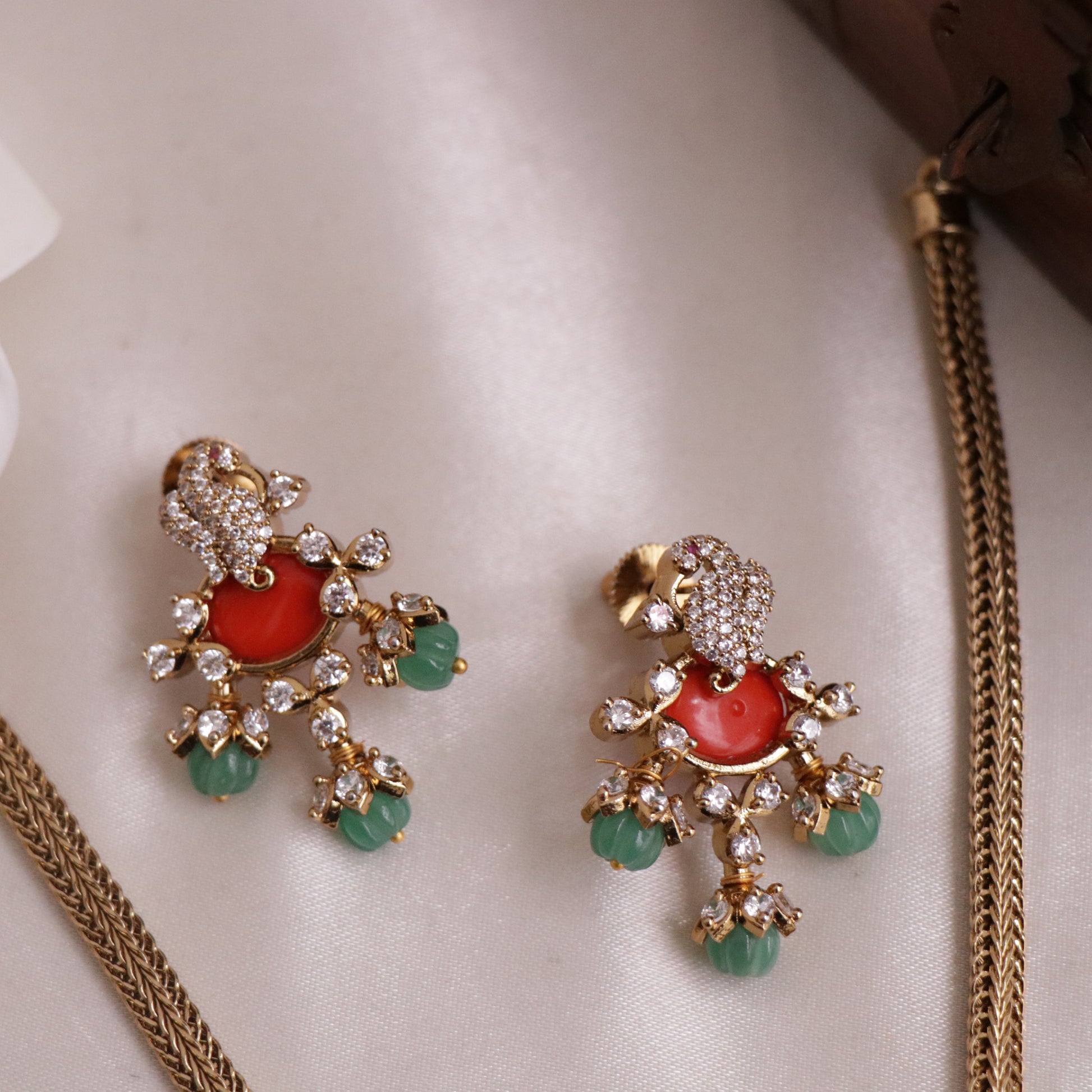 Trendy Peacock Chain Set with Pastel Green Beads NC1830