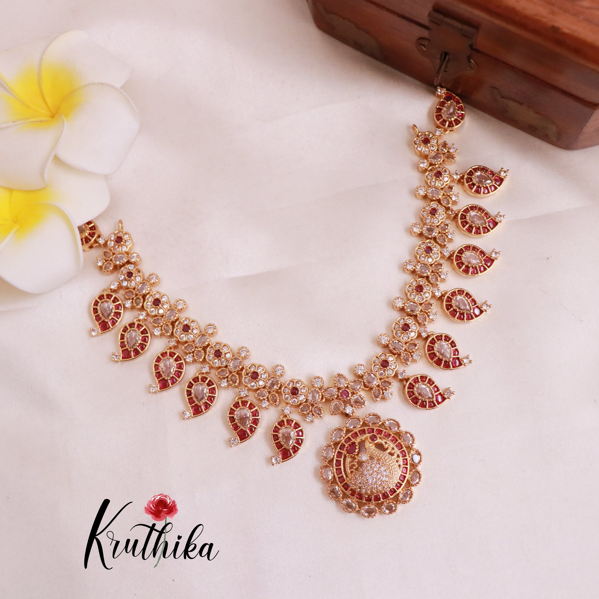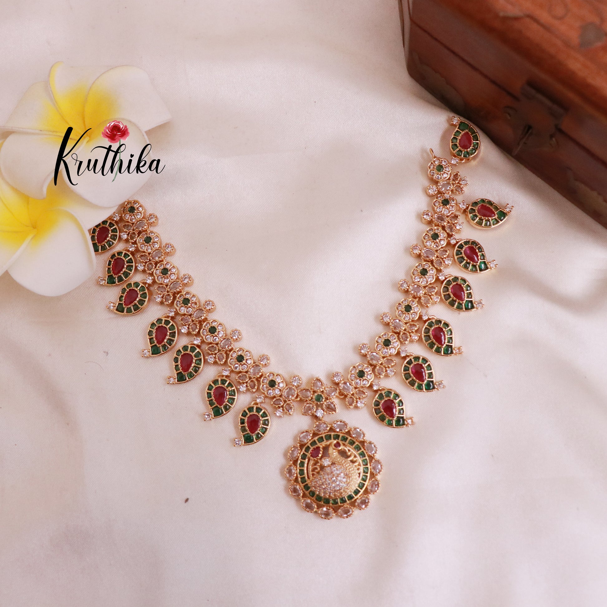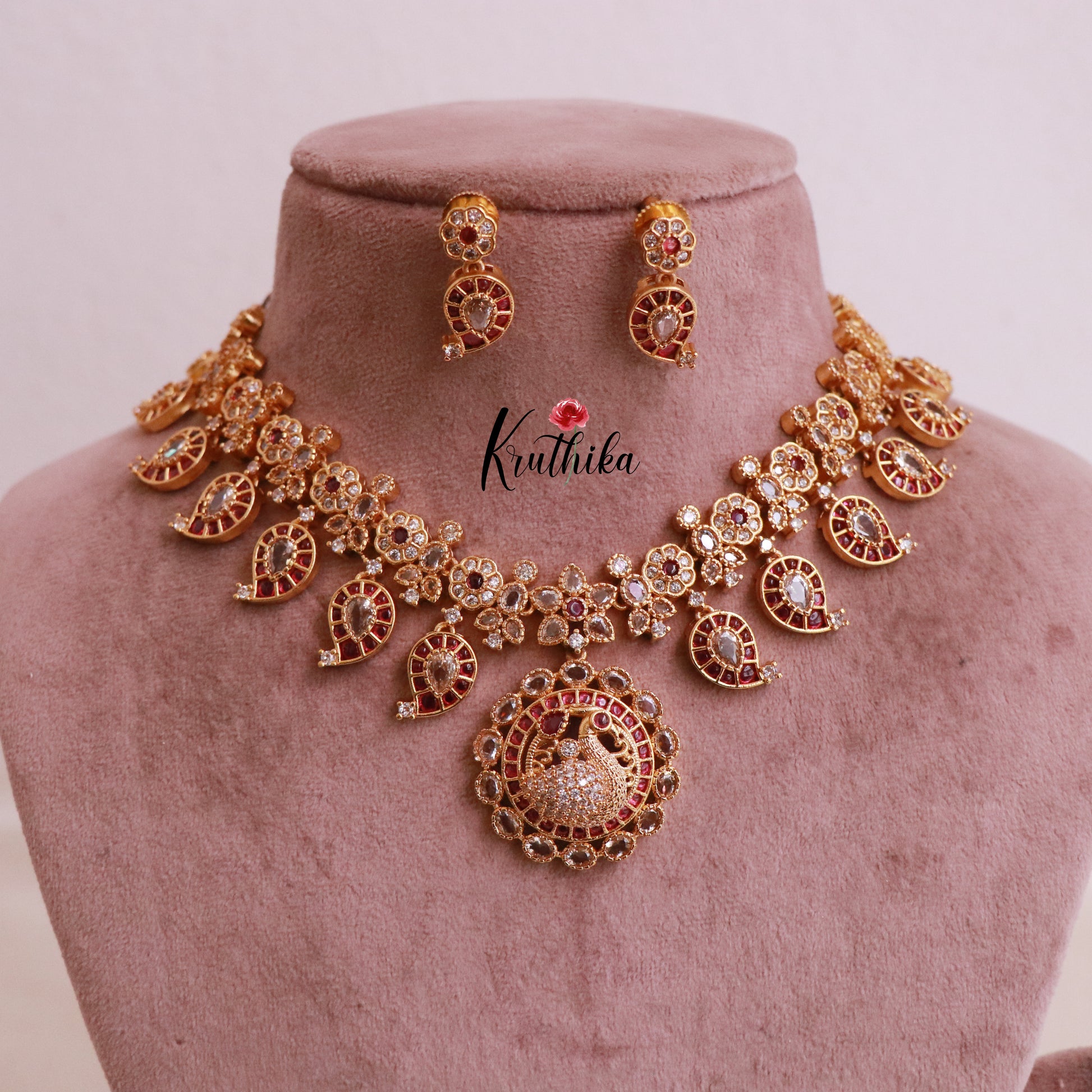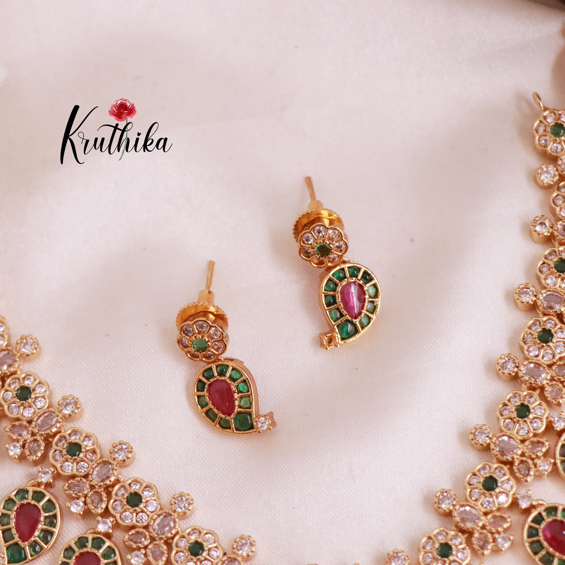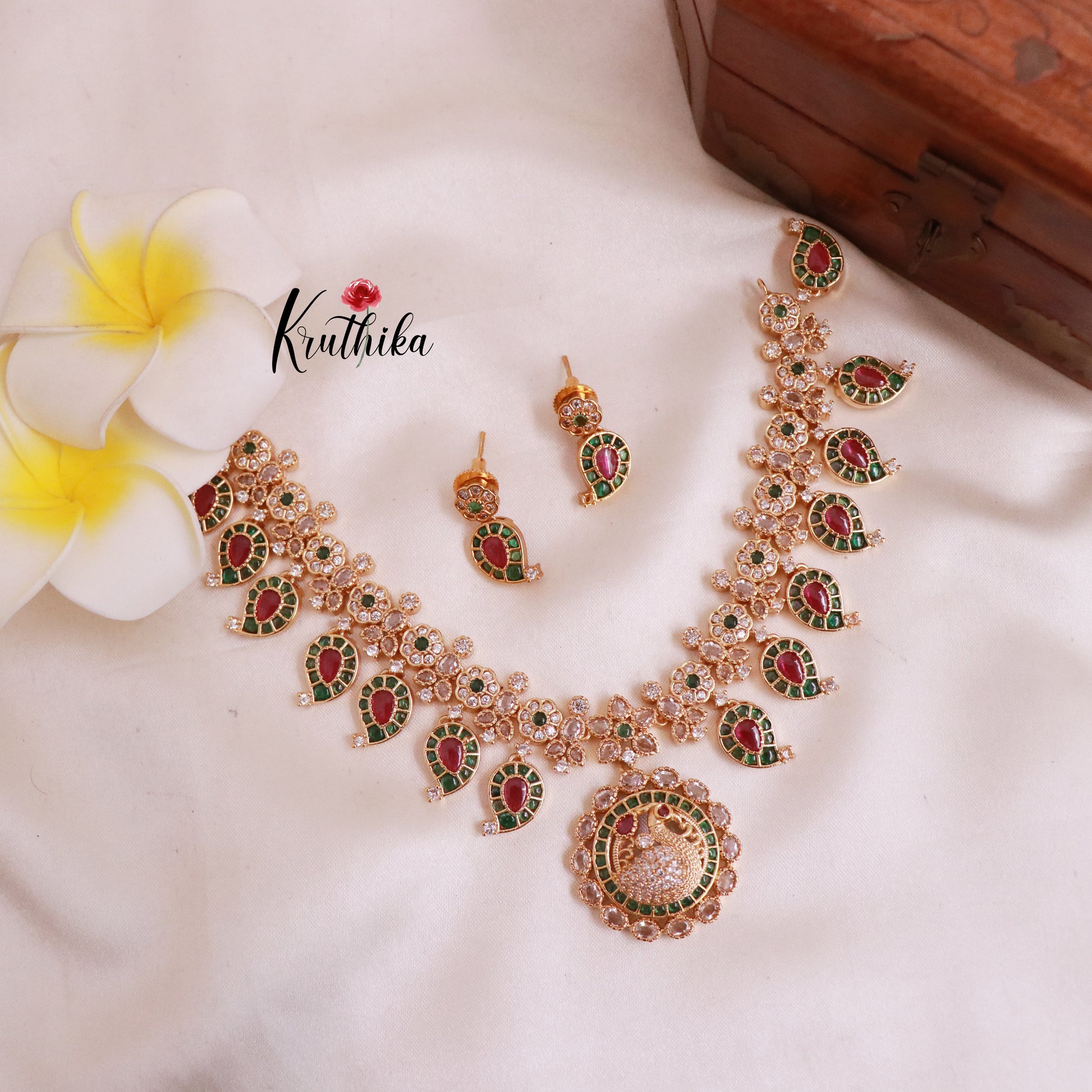 Enhance your style with our stunning ,Trendy Peacock Flower Mango Design Crafted with high-quality stones & beads, this set combines timeless elegance with a modern touch. Ideal for special occasions or adding a touch of glamour to your look.