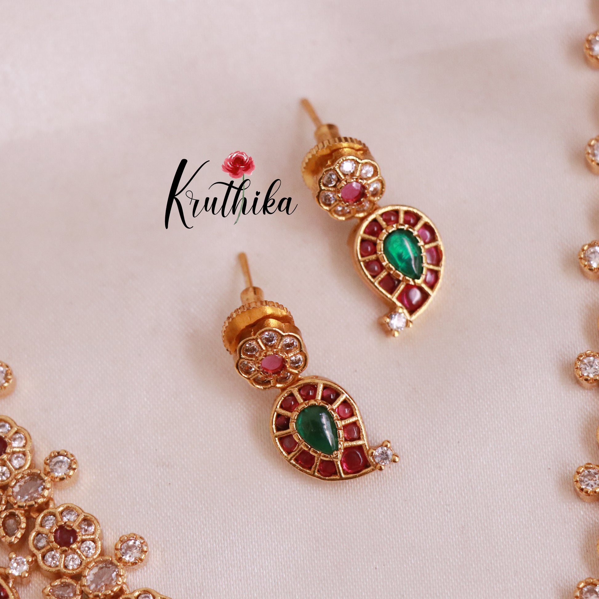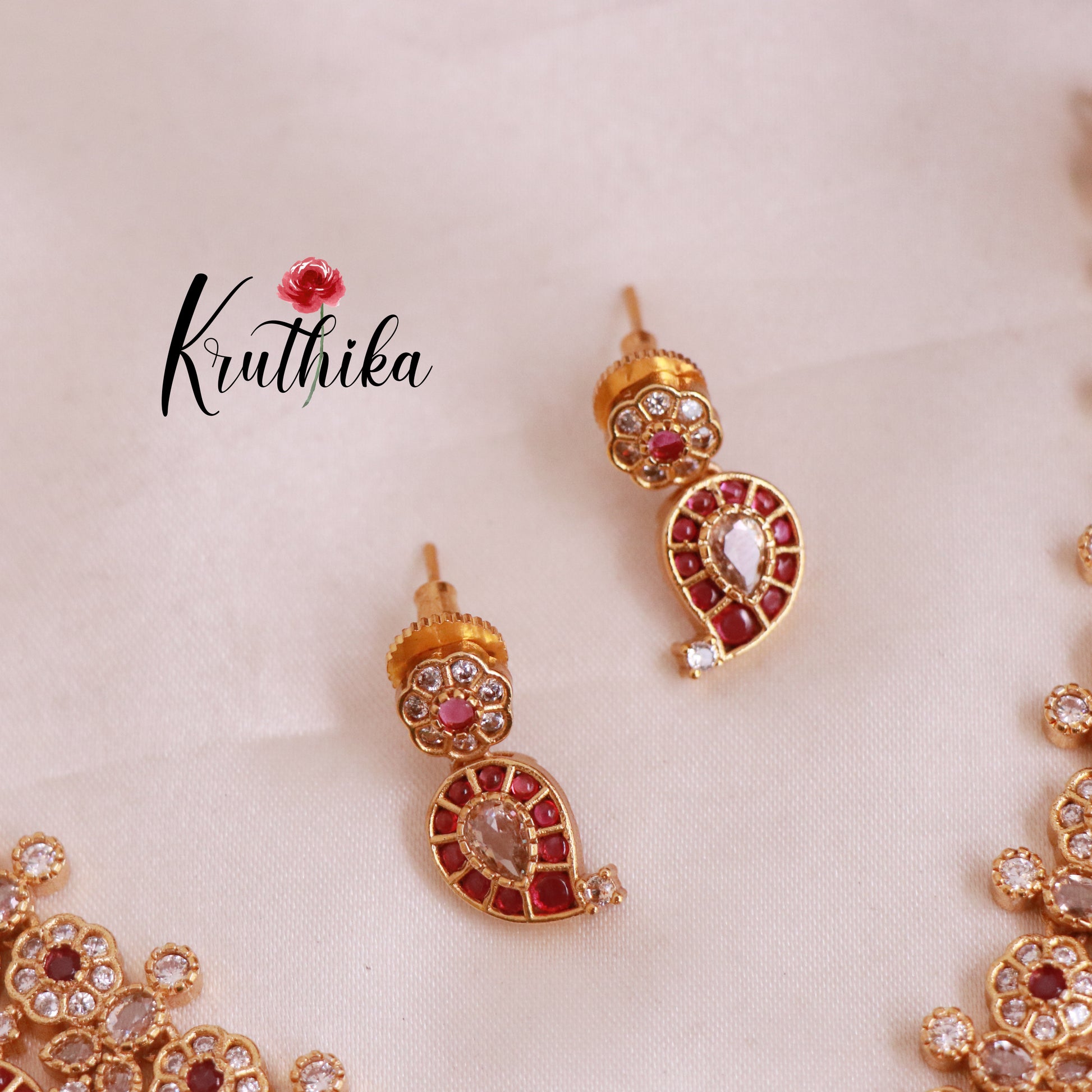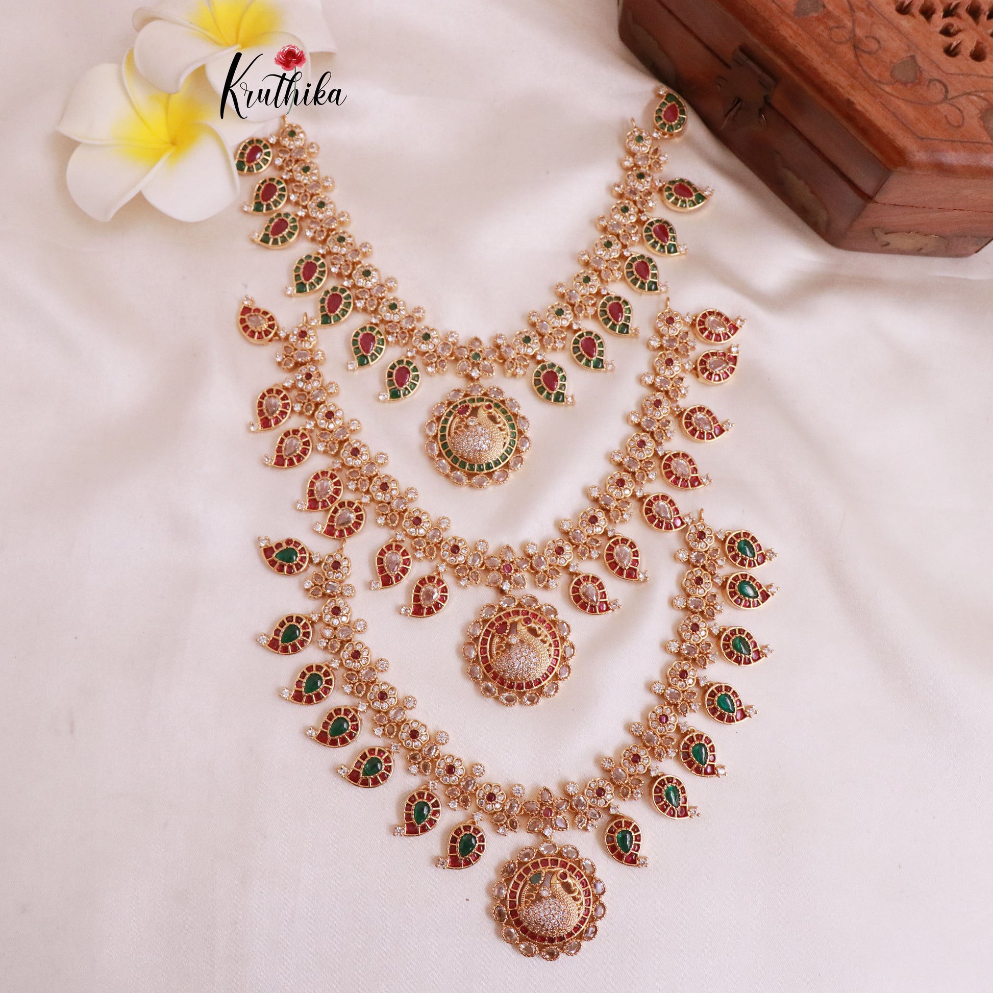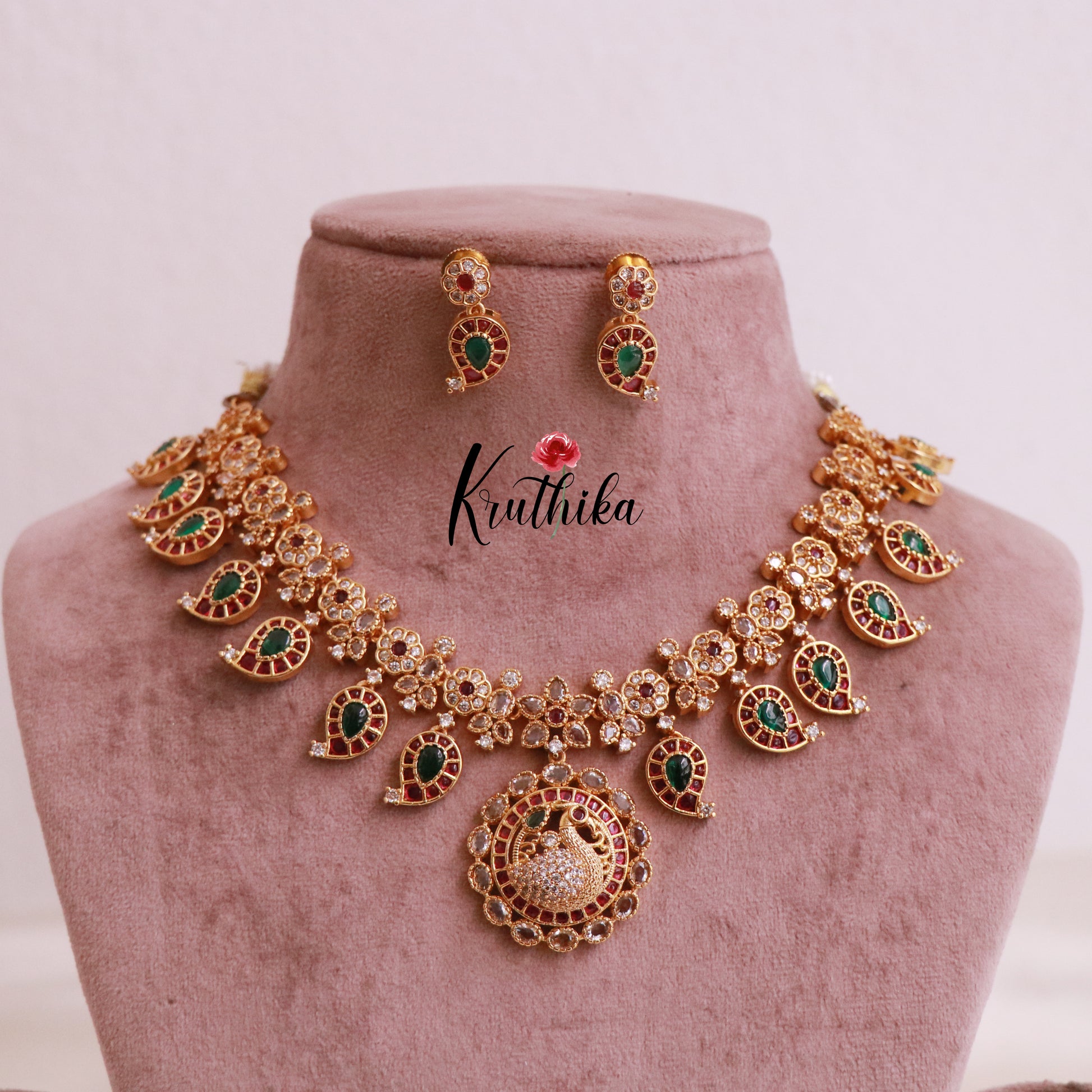 Enhance your style with our stunning ,Trendy Peacock Flower Mango Design Crafted with high-quality stones & beads, this set combines timeless elegance with a modern touch. Ideal for special occasions or adding a touch of glamour to your look.