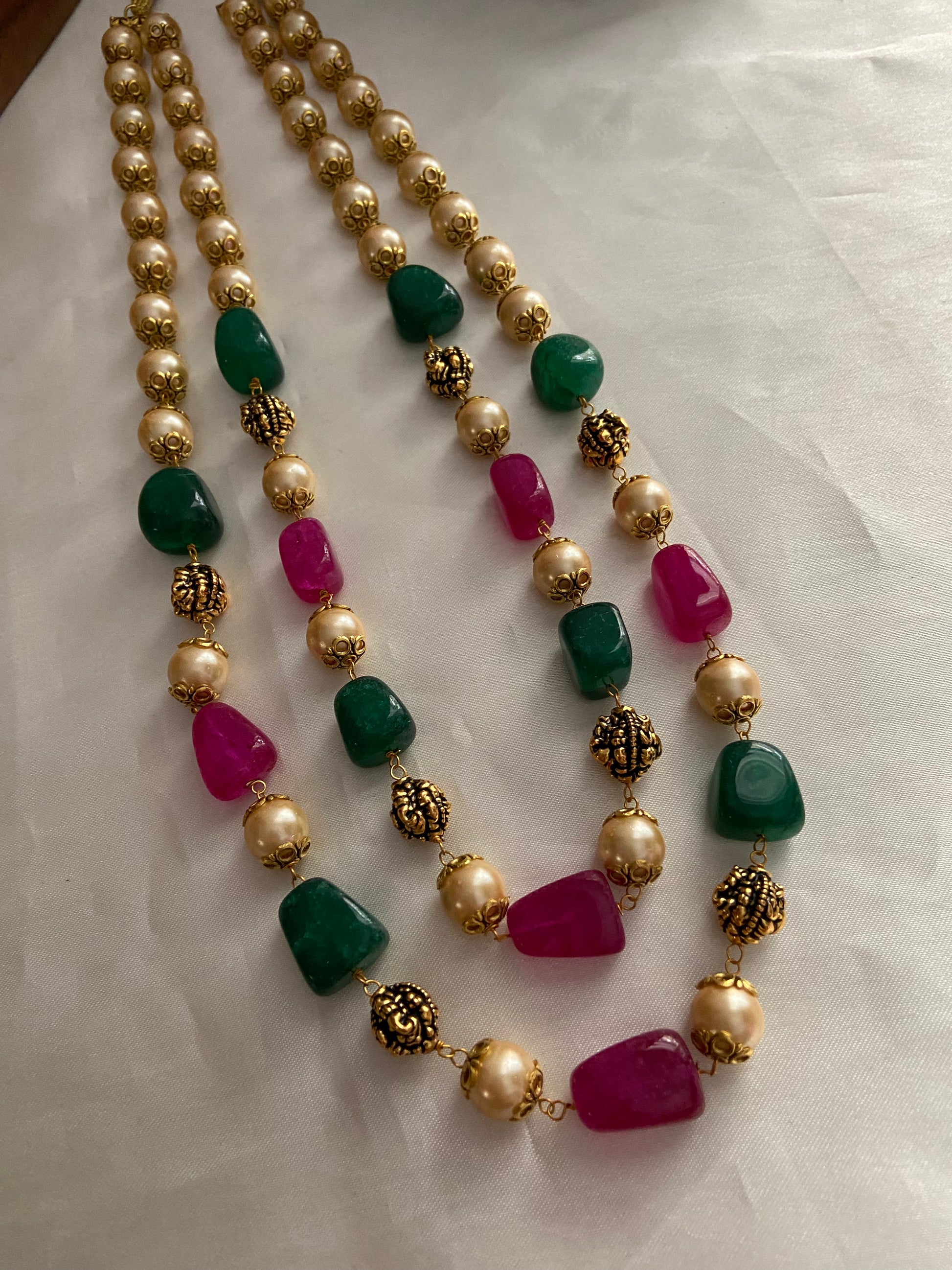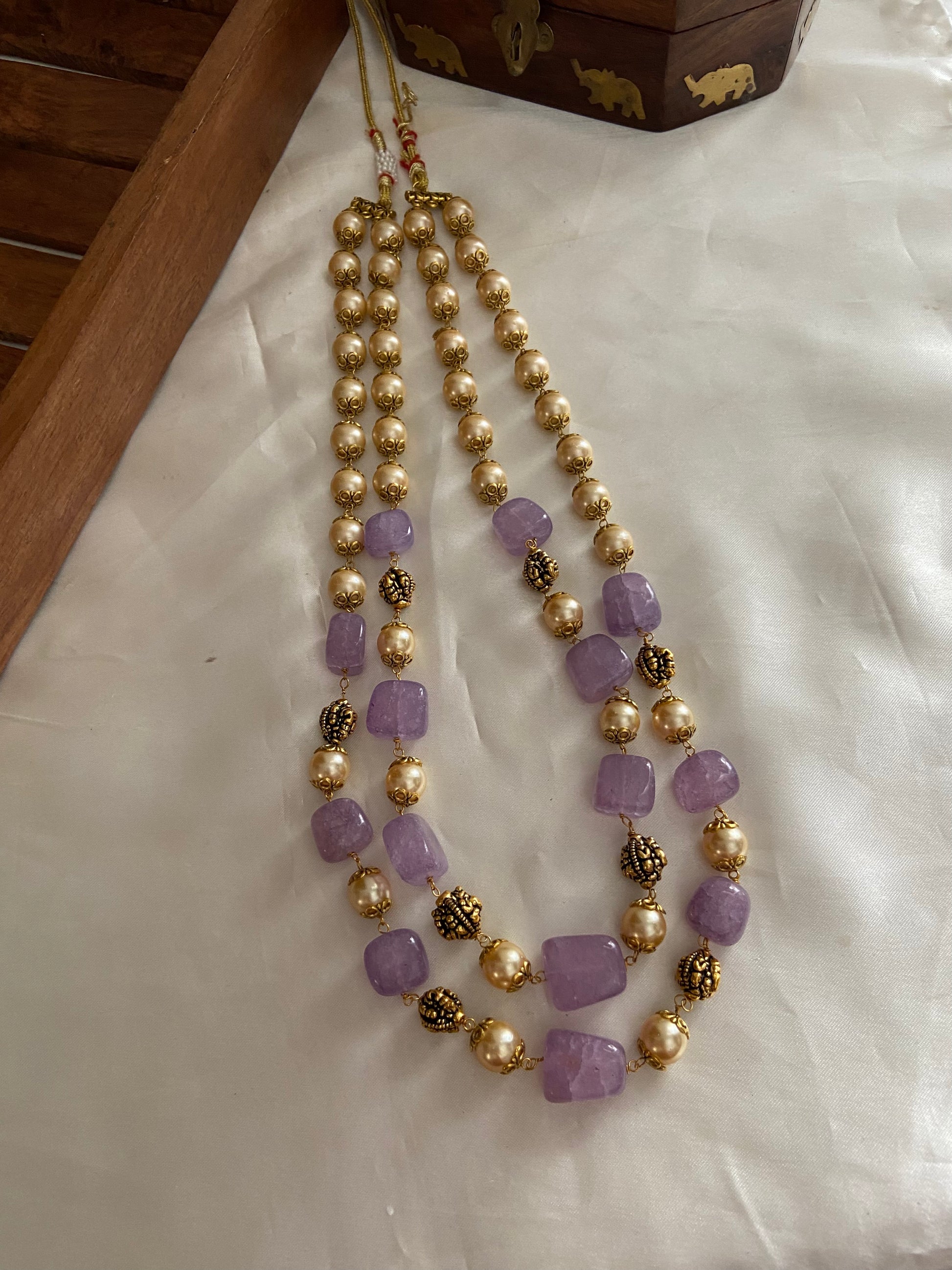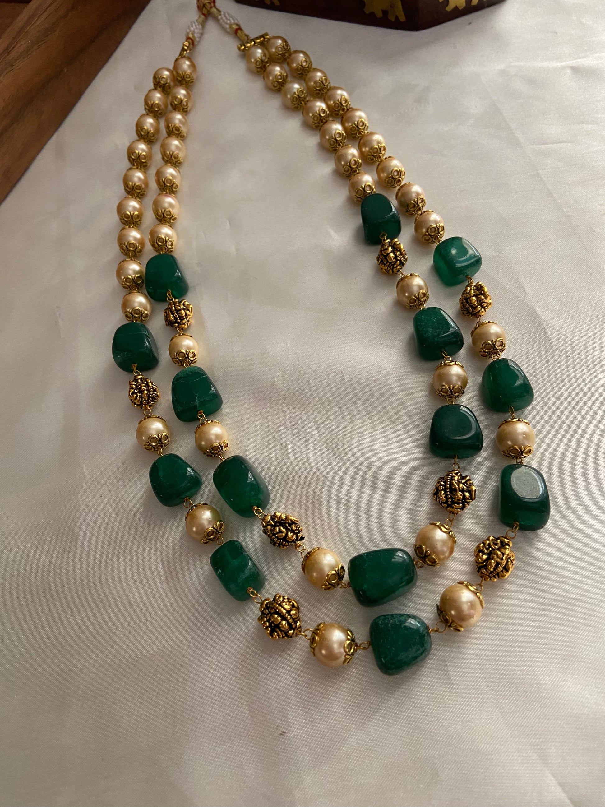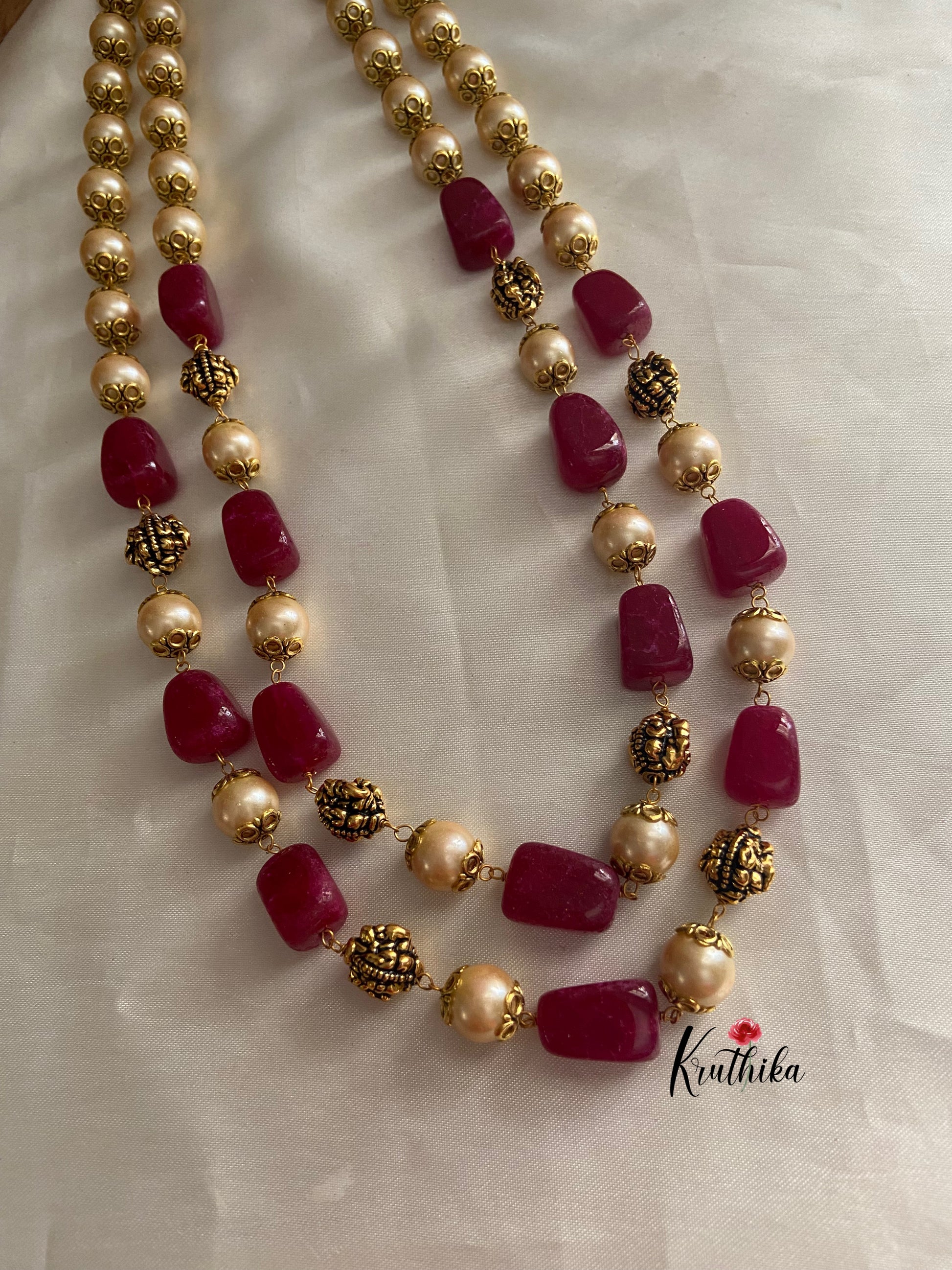 Enhance your style with our stunning Two lines pearls beads maala, paired perfectly with matching earrings. Crafted with high-quality stones & beads, this set combines timeless elegance with a modern touch. Ideal for special occasions or adding a touch of glamour to your look.