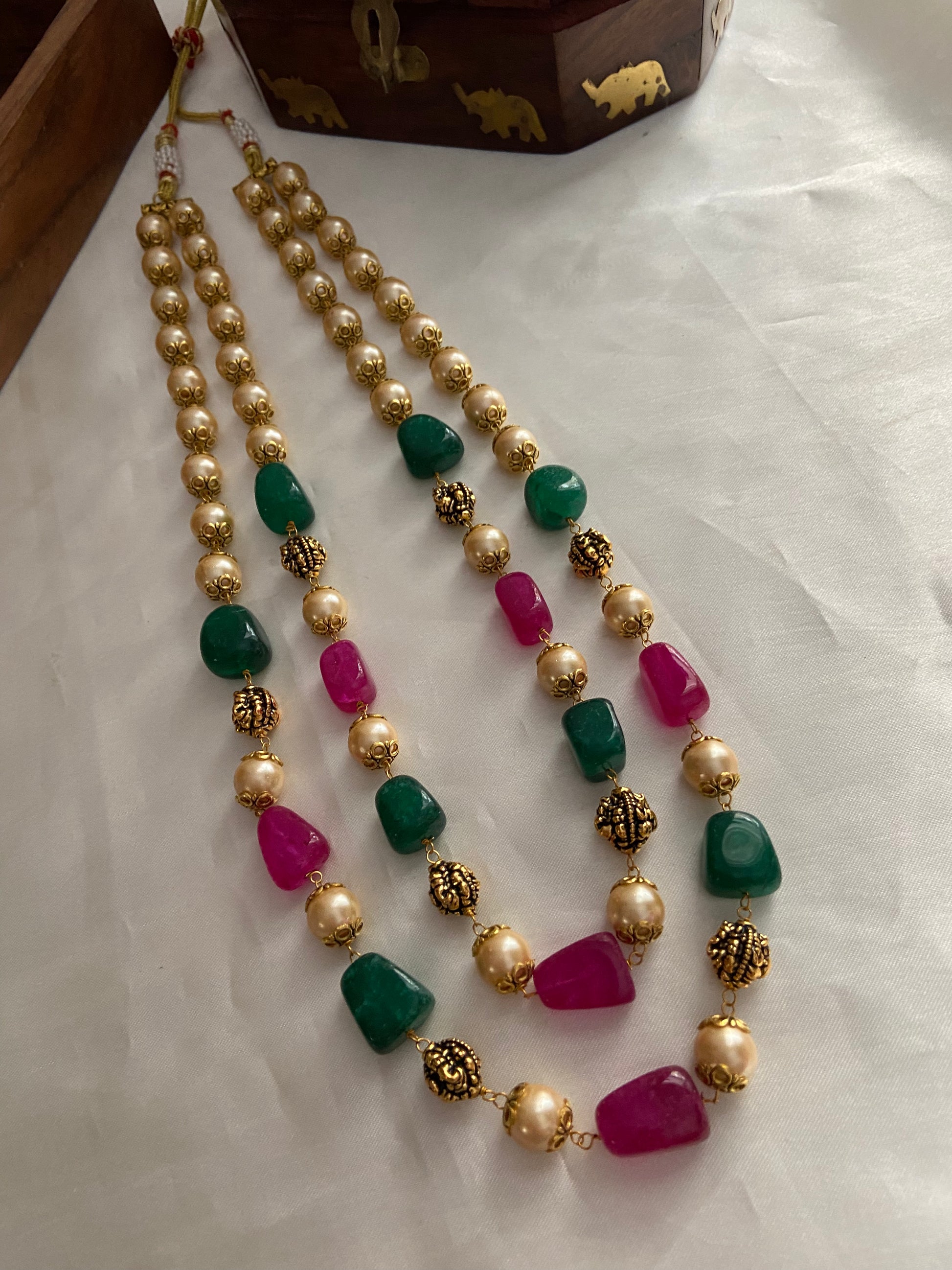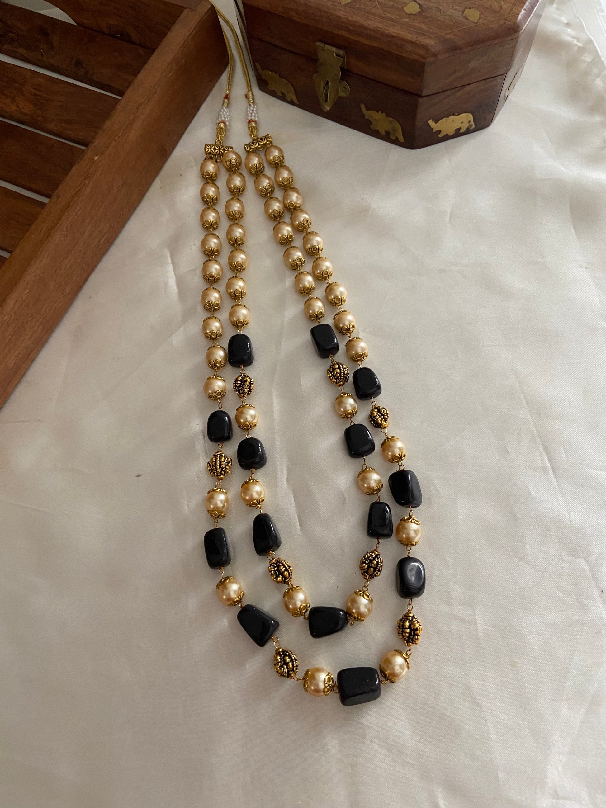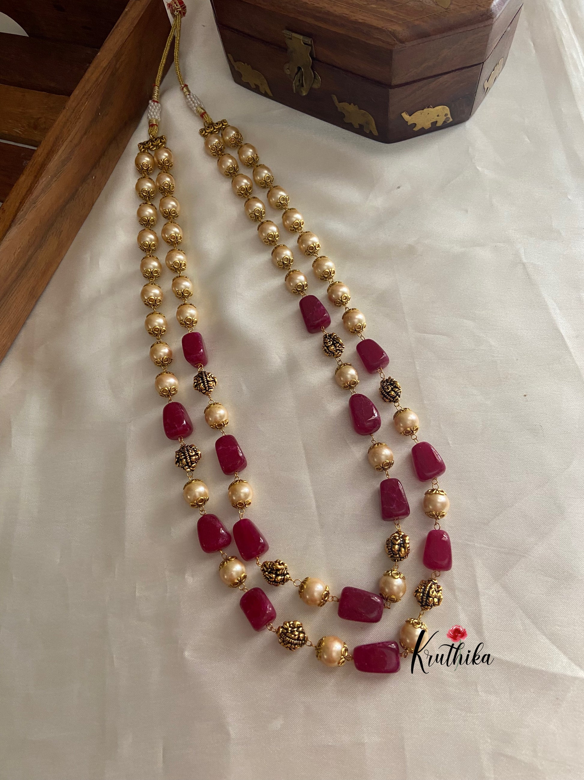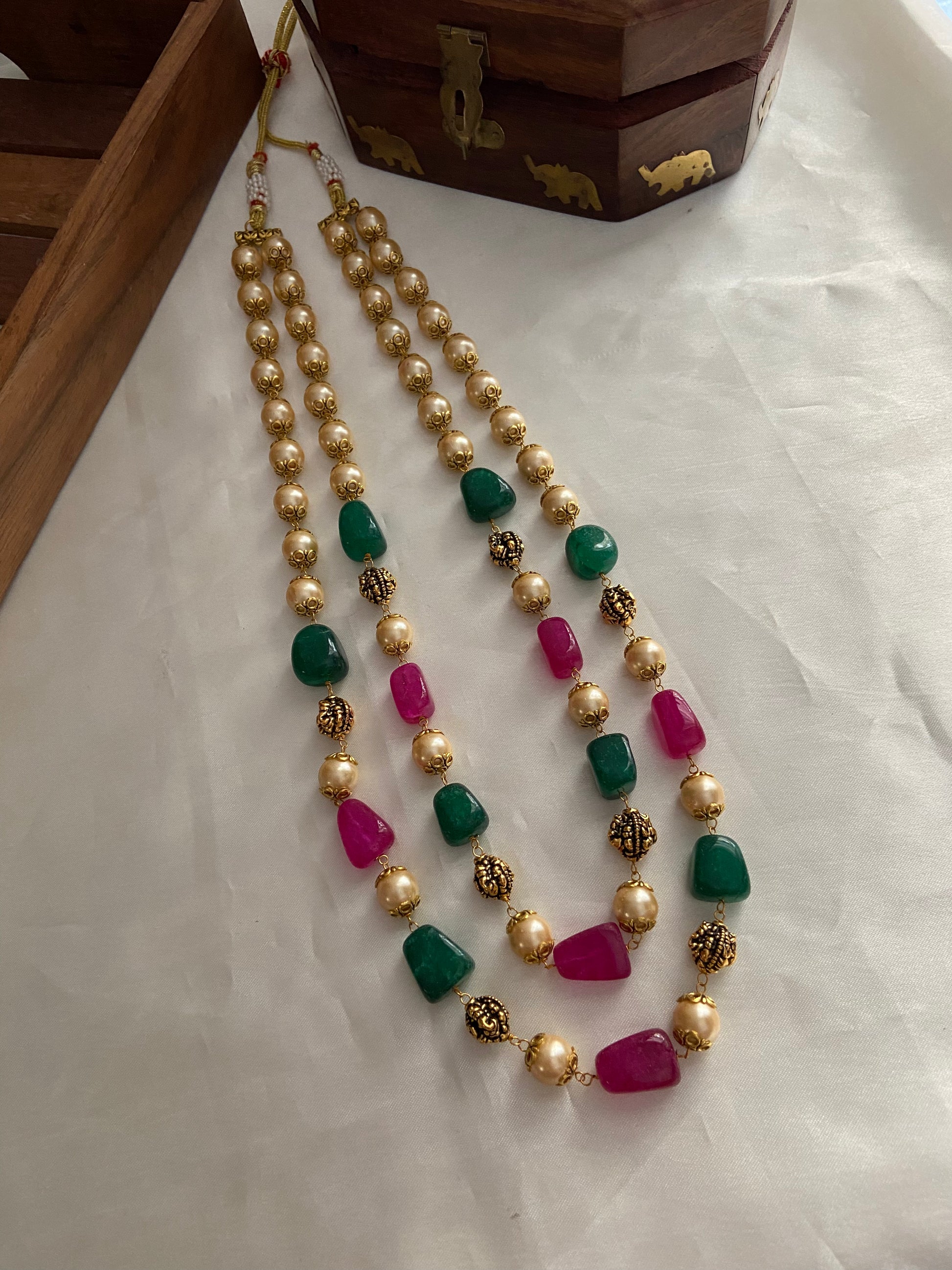 Enhance your style with our stunning Two lines pearls beads maala, paired perfectly with matching earrings. Crafted with high-quality stones & beads, this set combines timeless elegance with a modern touch. Ideal for special occasions or adding a touch of glamour to your look.