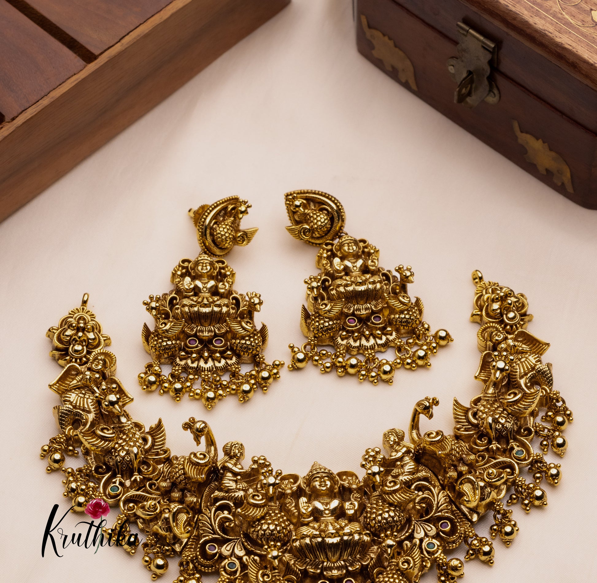 Enhance your style with our stunning Premium Nagas Lakshmi peacock necklace, paired perfectly with matching earrings. Crafted with high-quality stones & beads, this set combines timeless elegance with a modern touch. Ideal for special occasions or adding a touch of glamour to your look.