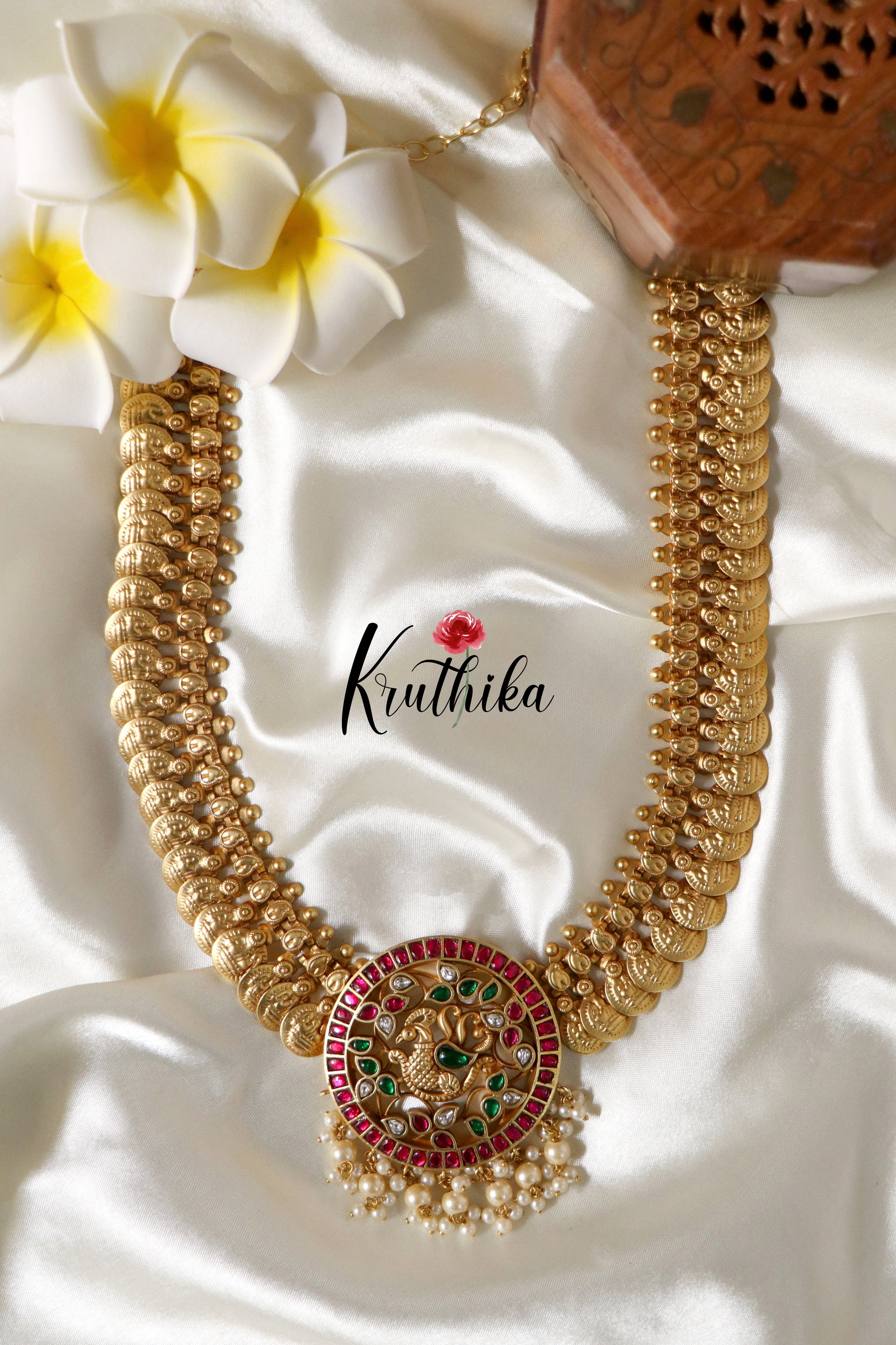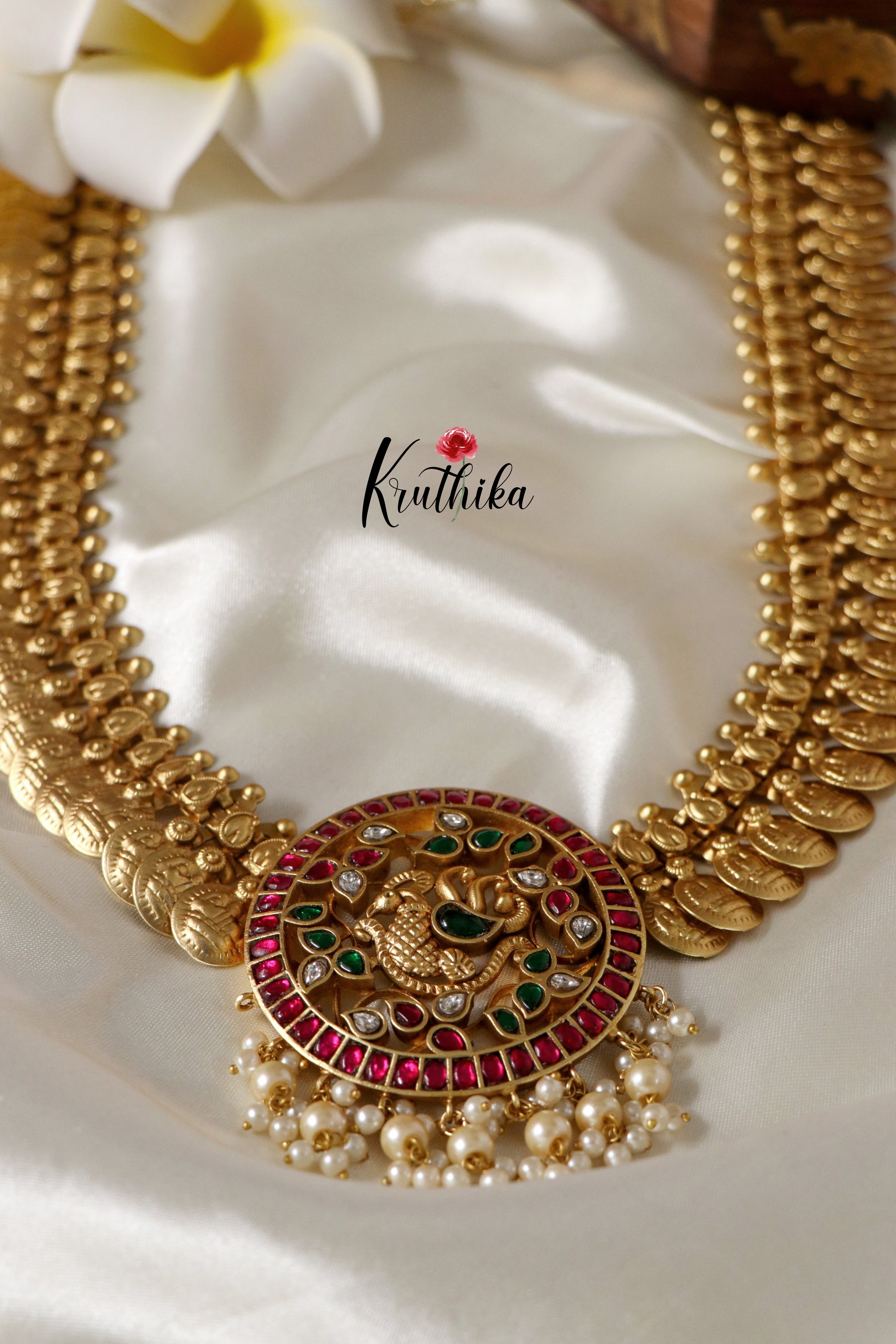 Enhance your style with our stunning Premium peacock jadau kasu Haaram, paired perfectly with matching earrings. Crafted with high-quality stones & beads, this set combines timeless elegance with a modern touch. Ideal for special occasions or adding a touch of glamour to your look.