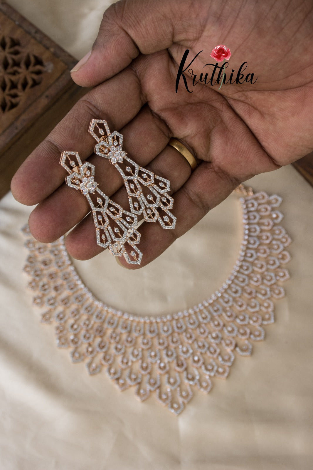 Enhance your style with our stunning AD Rose gold necklace set, paired perfectly with matching earrings. Crafted with high-quality stones & beads, this set combines timeless elegance with a modern touch. Ideal for special occasions or adding a touch of glamour to your look.