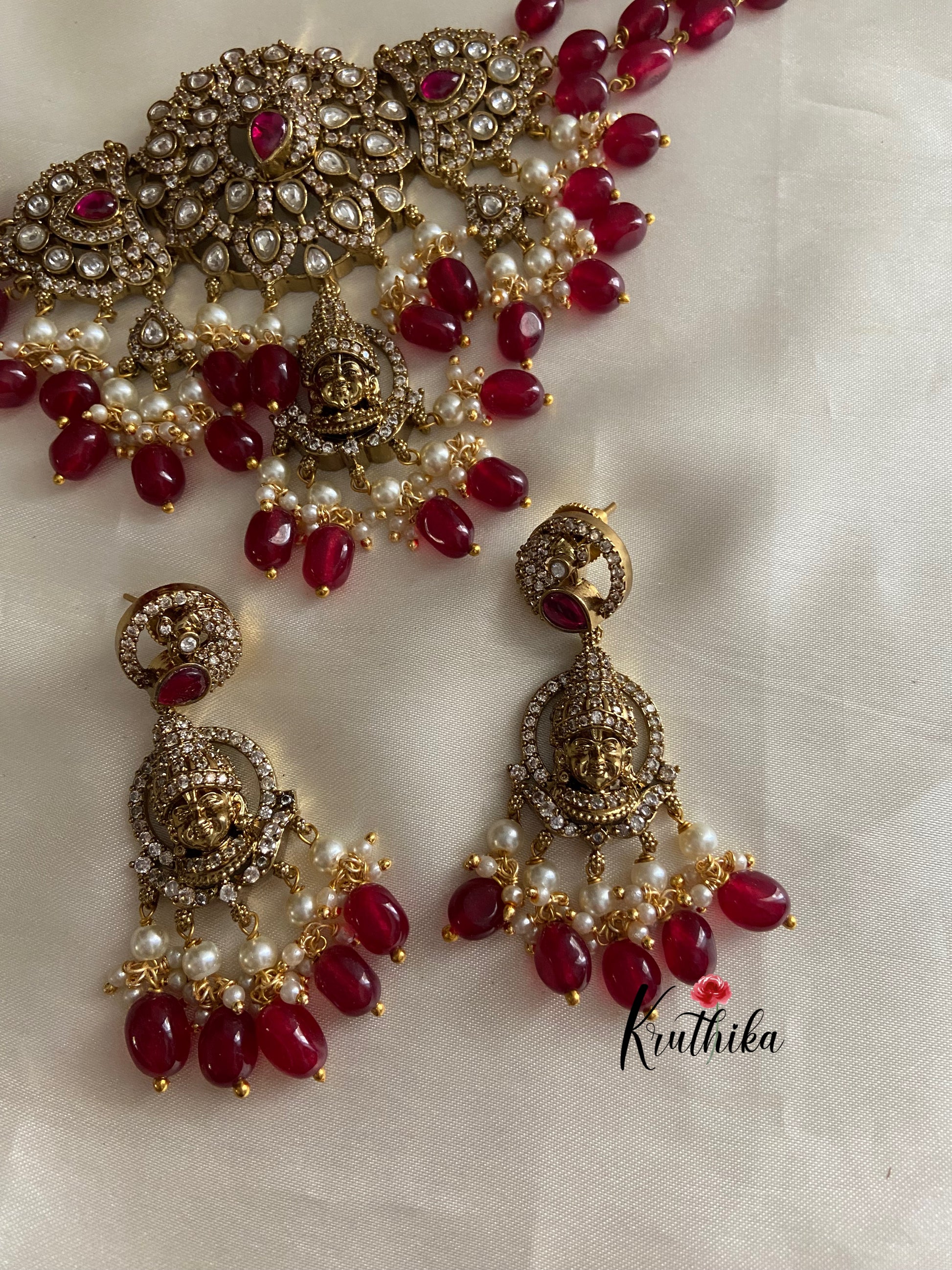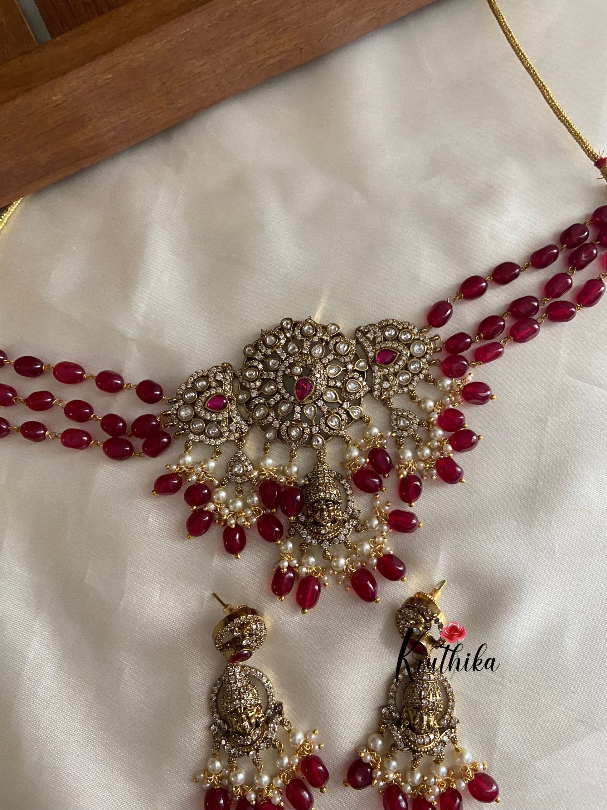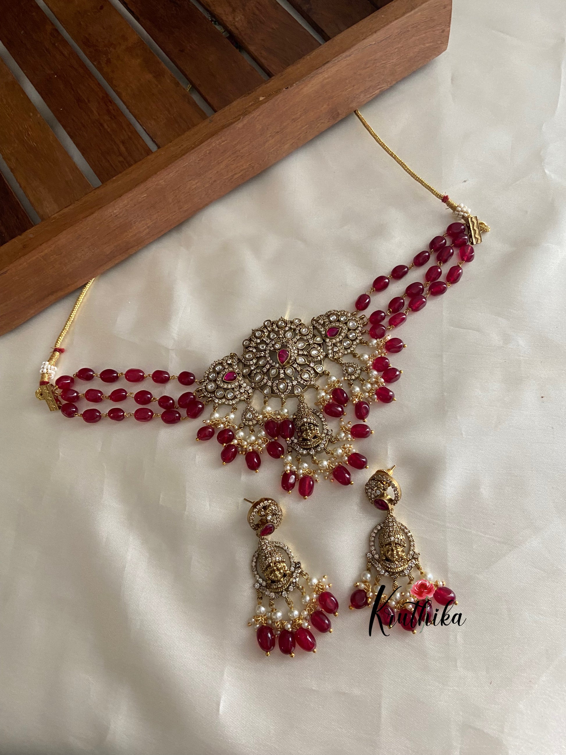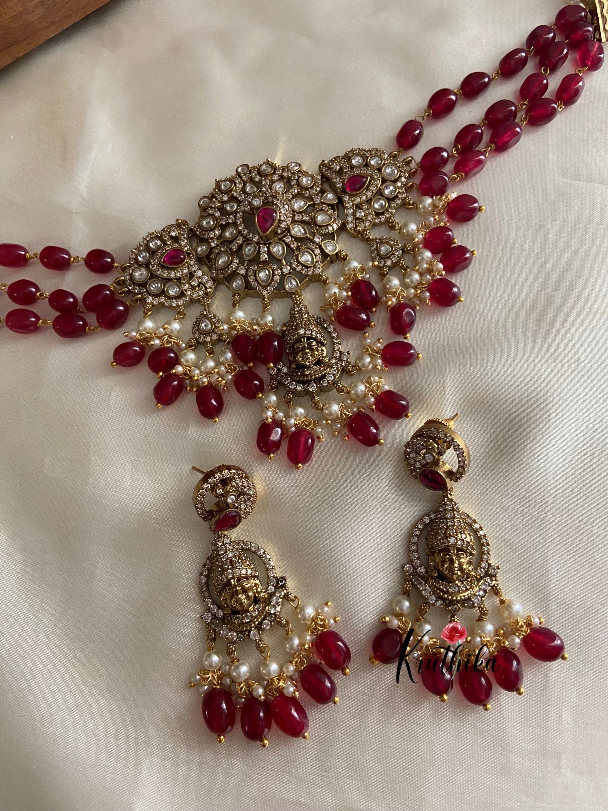 Enhance your style with our stunning Victorian maroon beads Peacock Goddess choker, paired perfectly with matching earrings. Crafted with high-quality stones & beads, this set combines timeless elegance with a modern touch. Ideal for special occasions or adding a touch of glamour to your look.