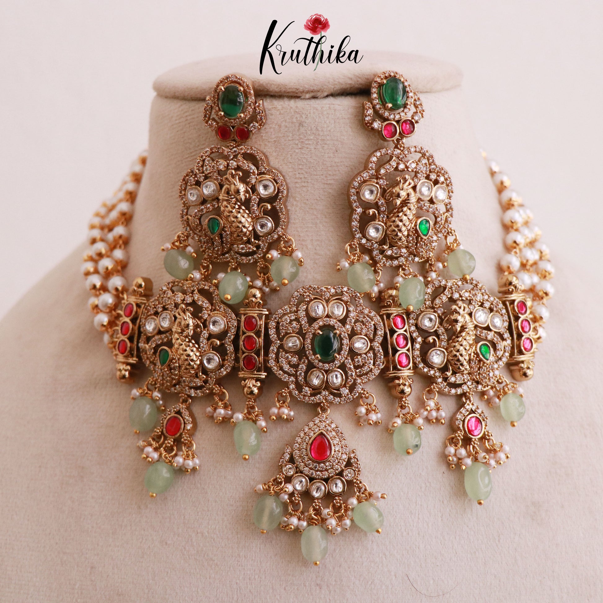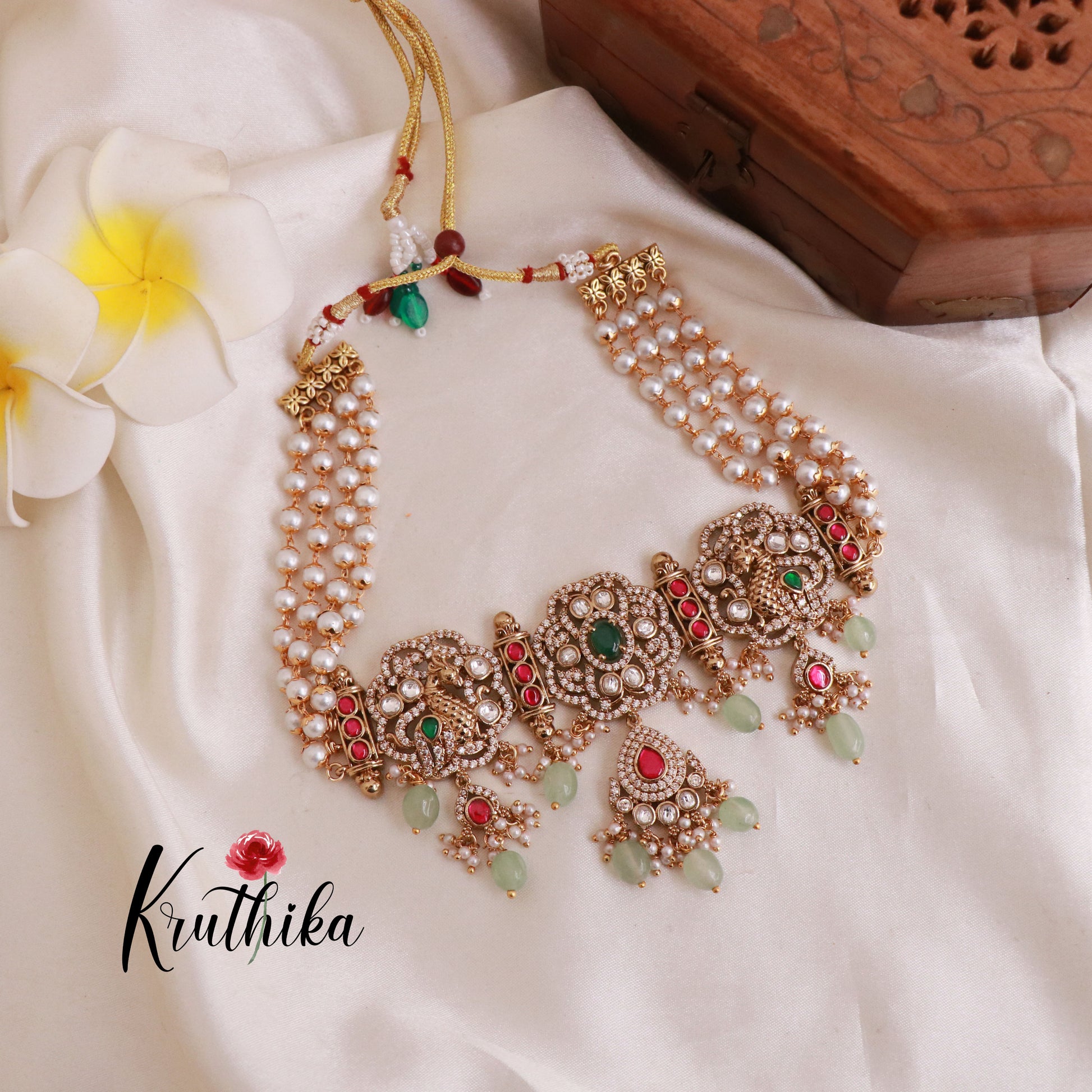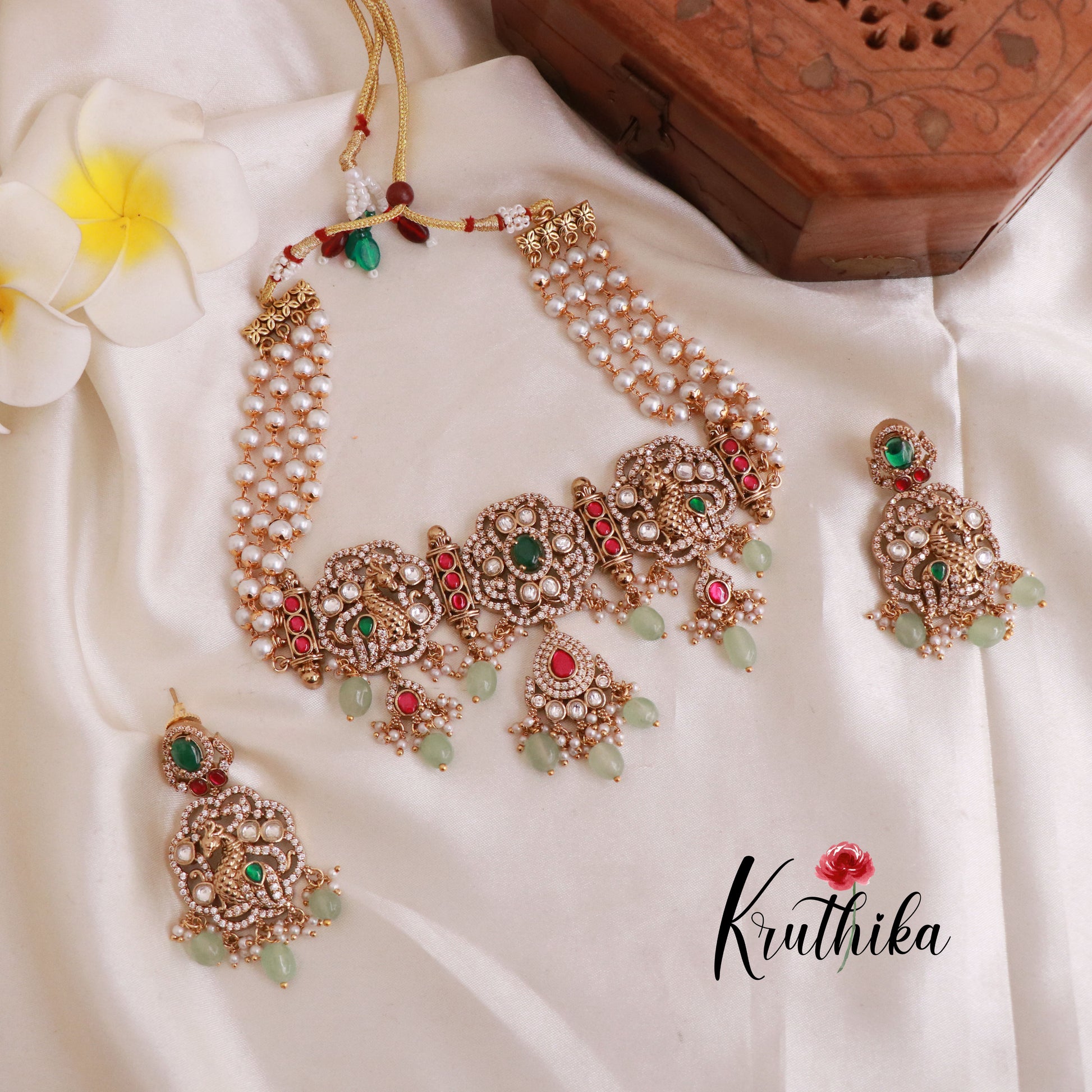 Enhance your style with our stunning Victorian peacock pearls choker, paired perfectly